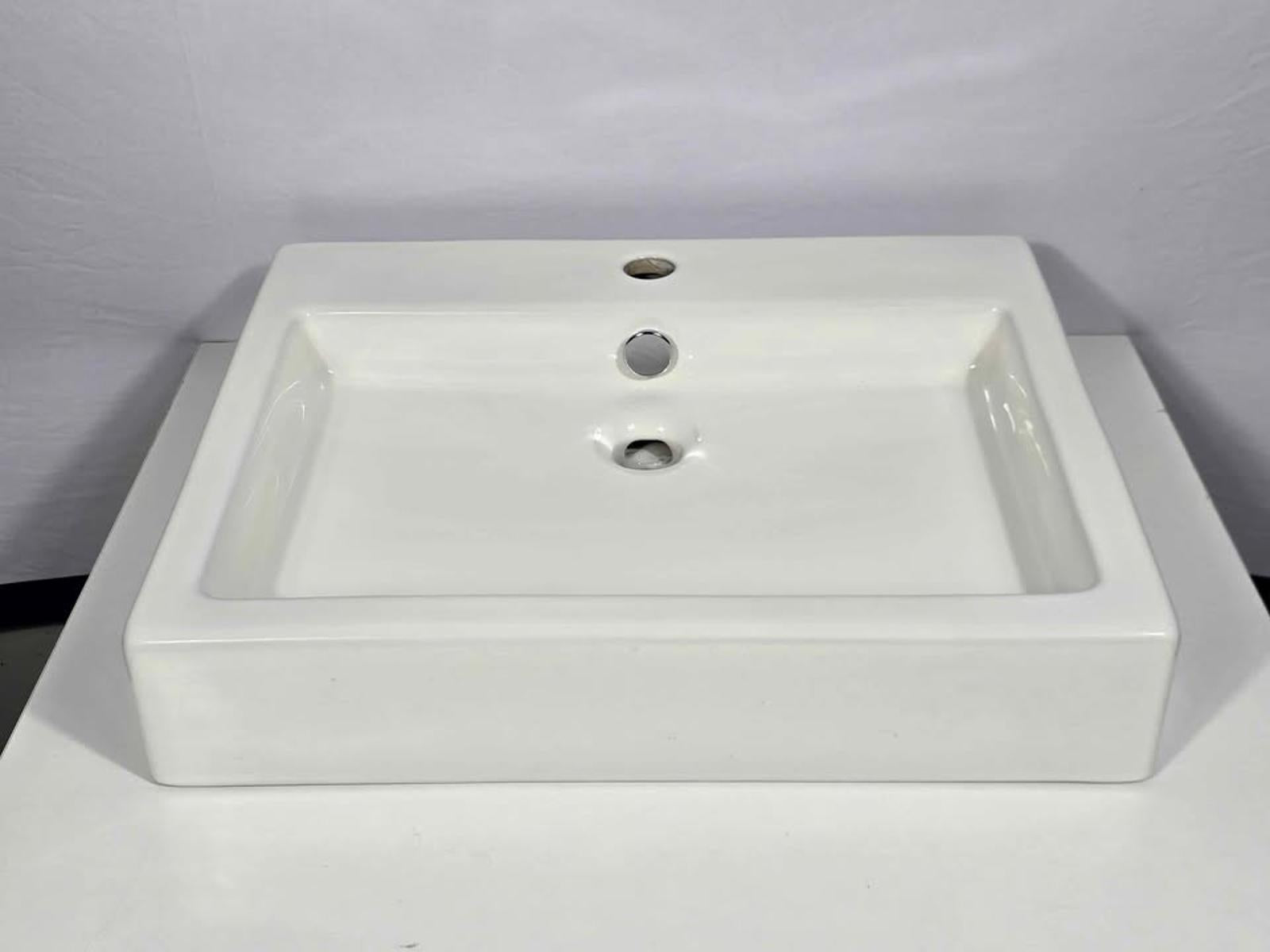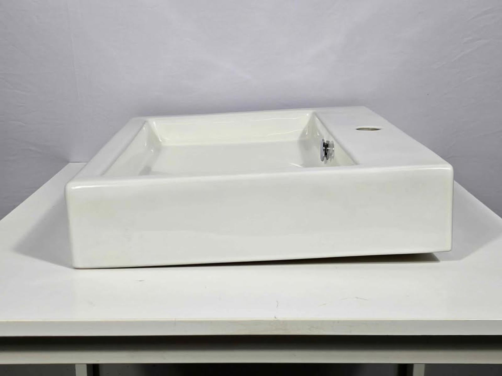 Quality, American Standard Studio vitreous china vessel sink is a contemporary drop in/above countertop rectangular sink design that has an integral faucet deck for a single hole faucet and rear overflow and fits most standard 22-Inch vanities. Outer Basin 22"L x 18.5"W x 4.5"H. Inner Basin 19.25"L x 12.625"W x 2.625"H. Drain connection 1.75". Retail $255
