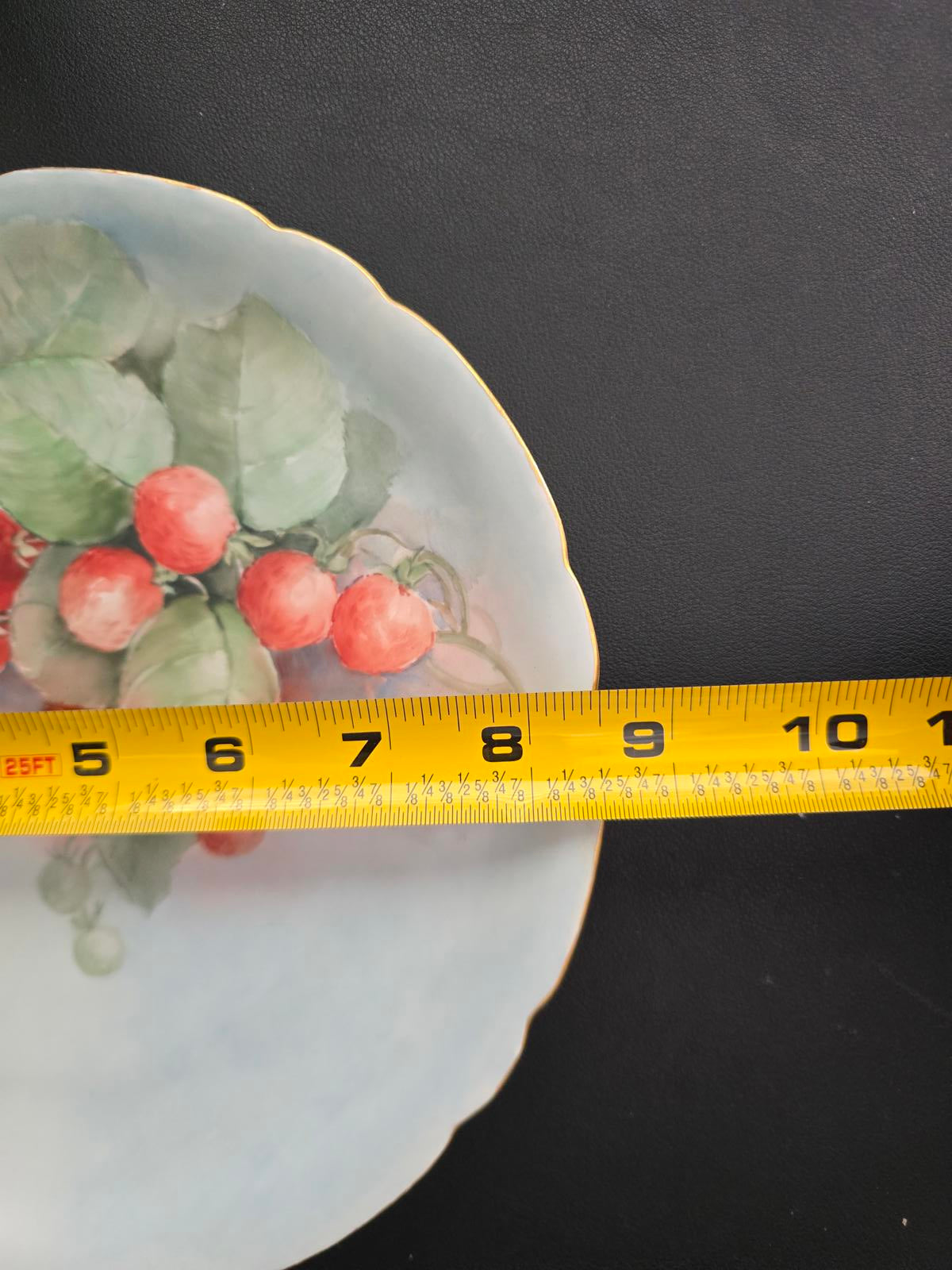 Vibrant strawberries and leaves with scalloped rim and gilded edge. Made in France c.1900's. 8.5"D.