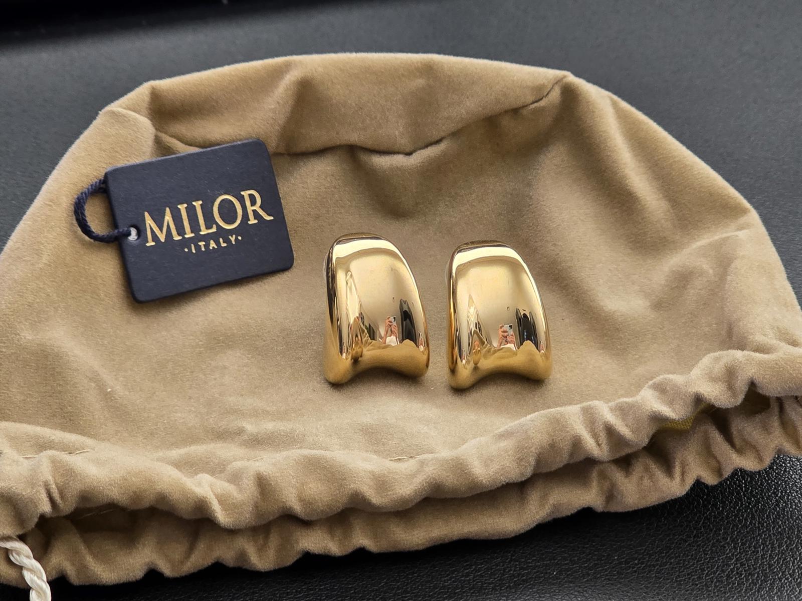 Stylish Genuine 14k Gold, resin filled sculptural earrings. 6.1 Grams TW. New with tags and pouch. Made in Italy. Approximate 3/4" Drop x 1/2"W.