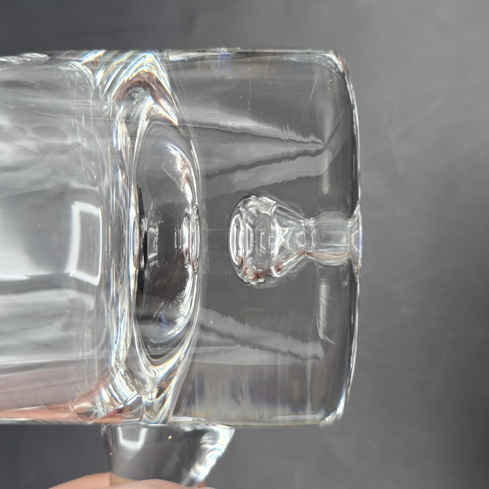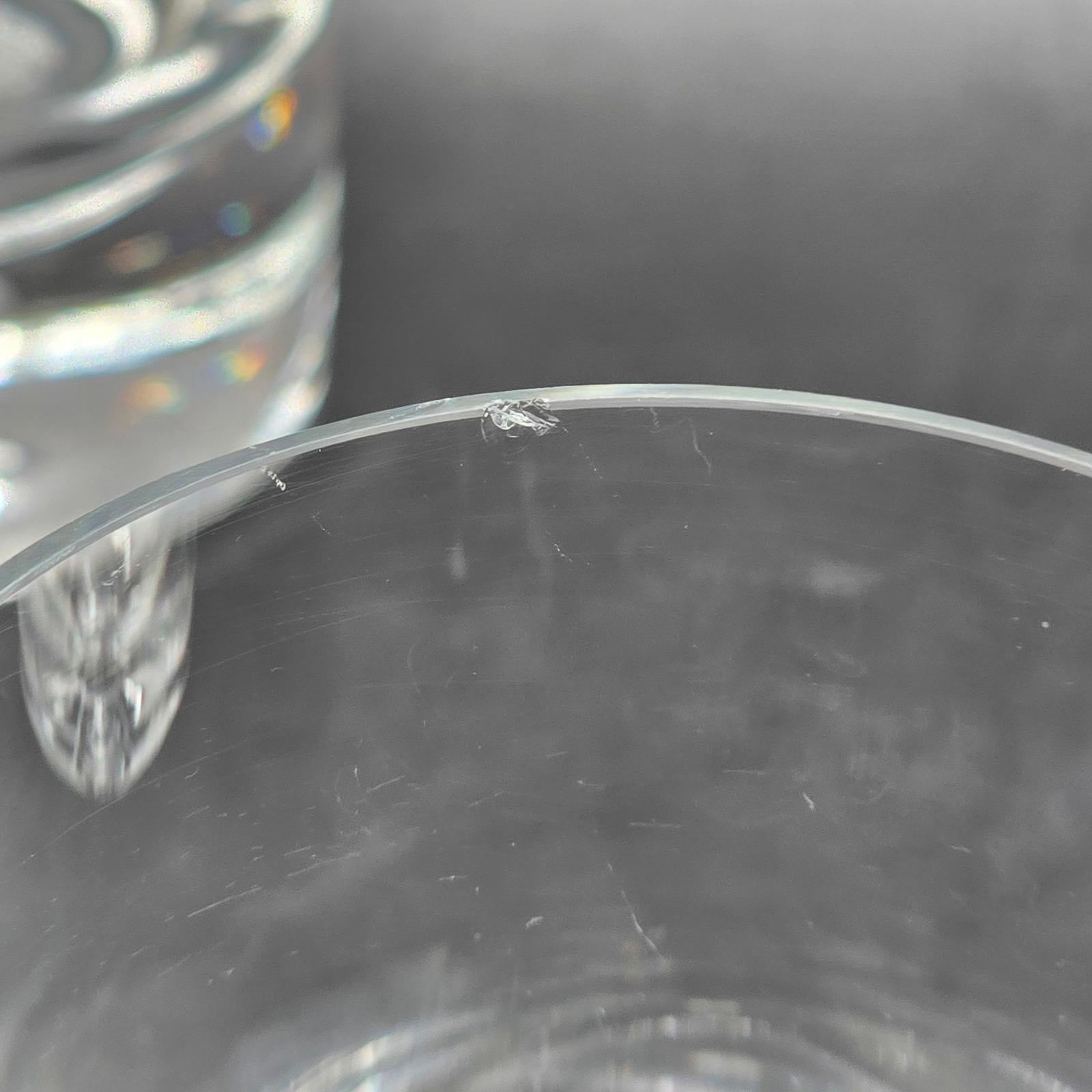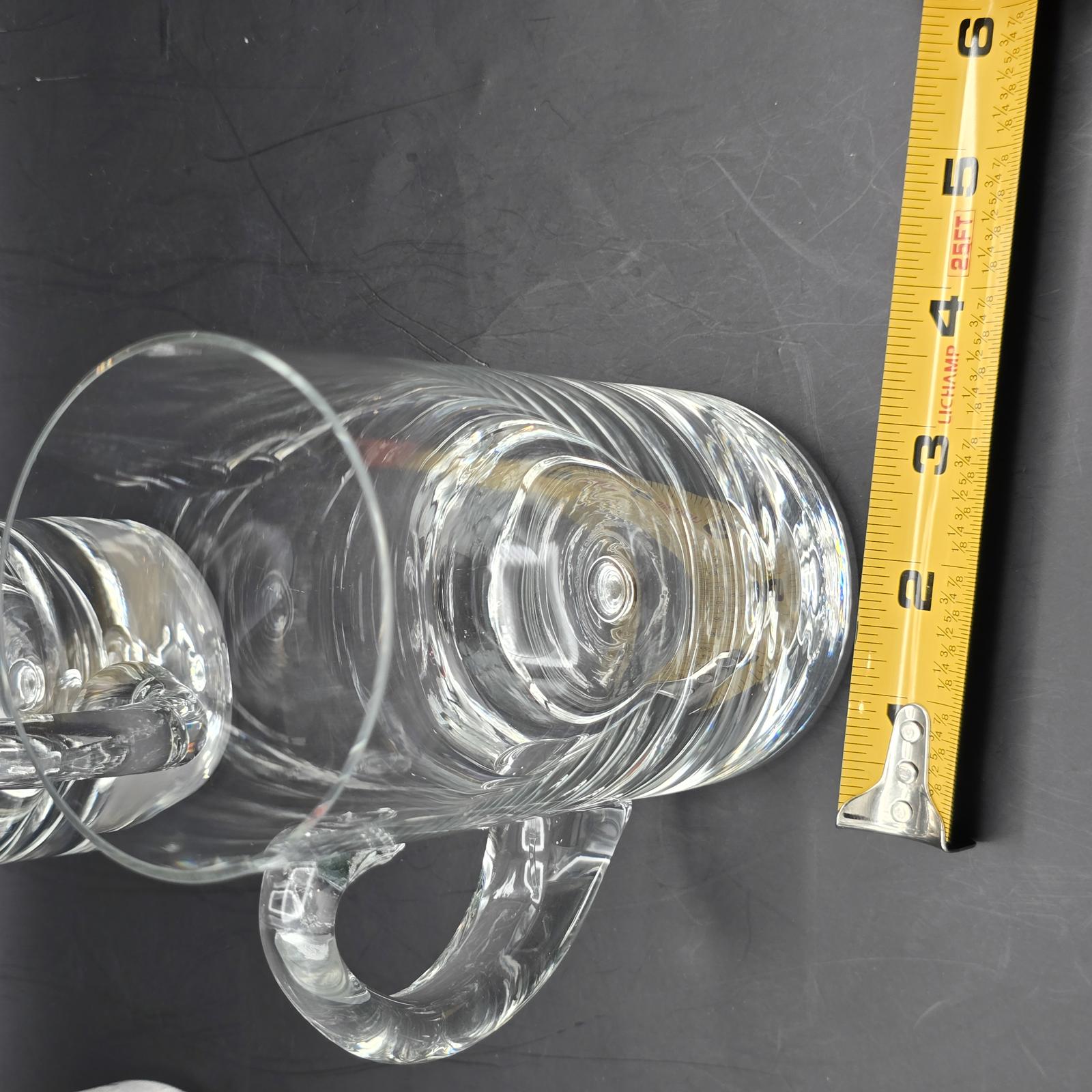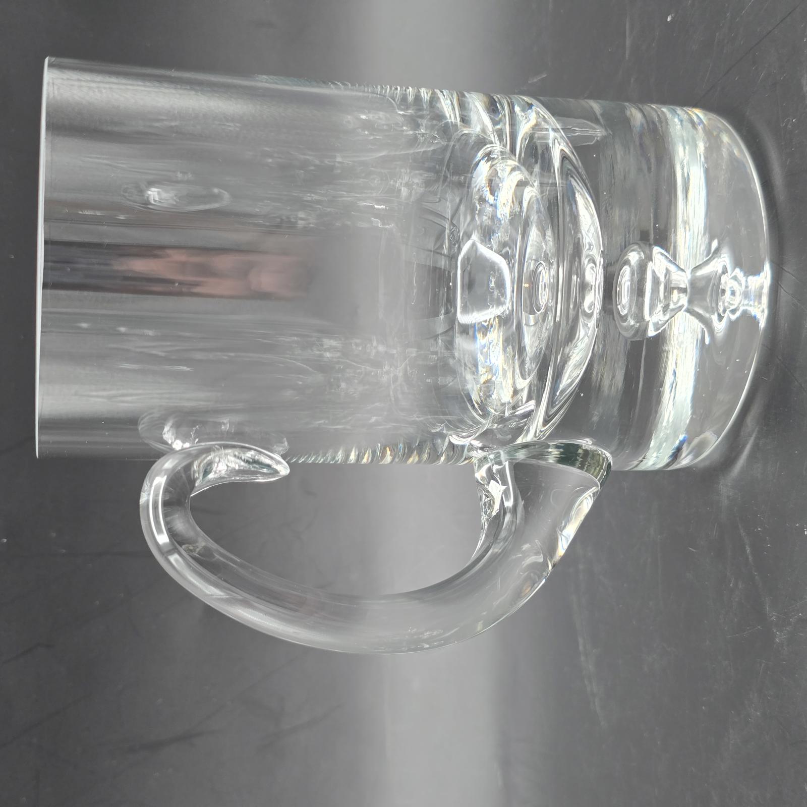 Set of 6, hand-blown, crystalline glass mugs with a perfectly-sized handle and the signature bubble at the bottom. These are great for serving up your favorite beverage to family and friends. 22 oz. Made by Krosno in Poland for Crate and Barrel. Minimal wear with a flea bite on the lip of 1 mug. Please refer to photos for condition. Approximately 5.75"T.