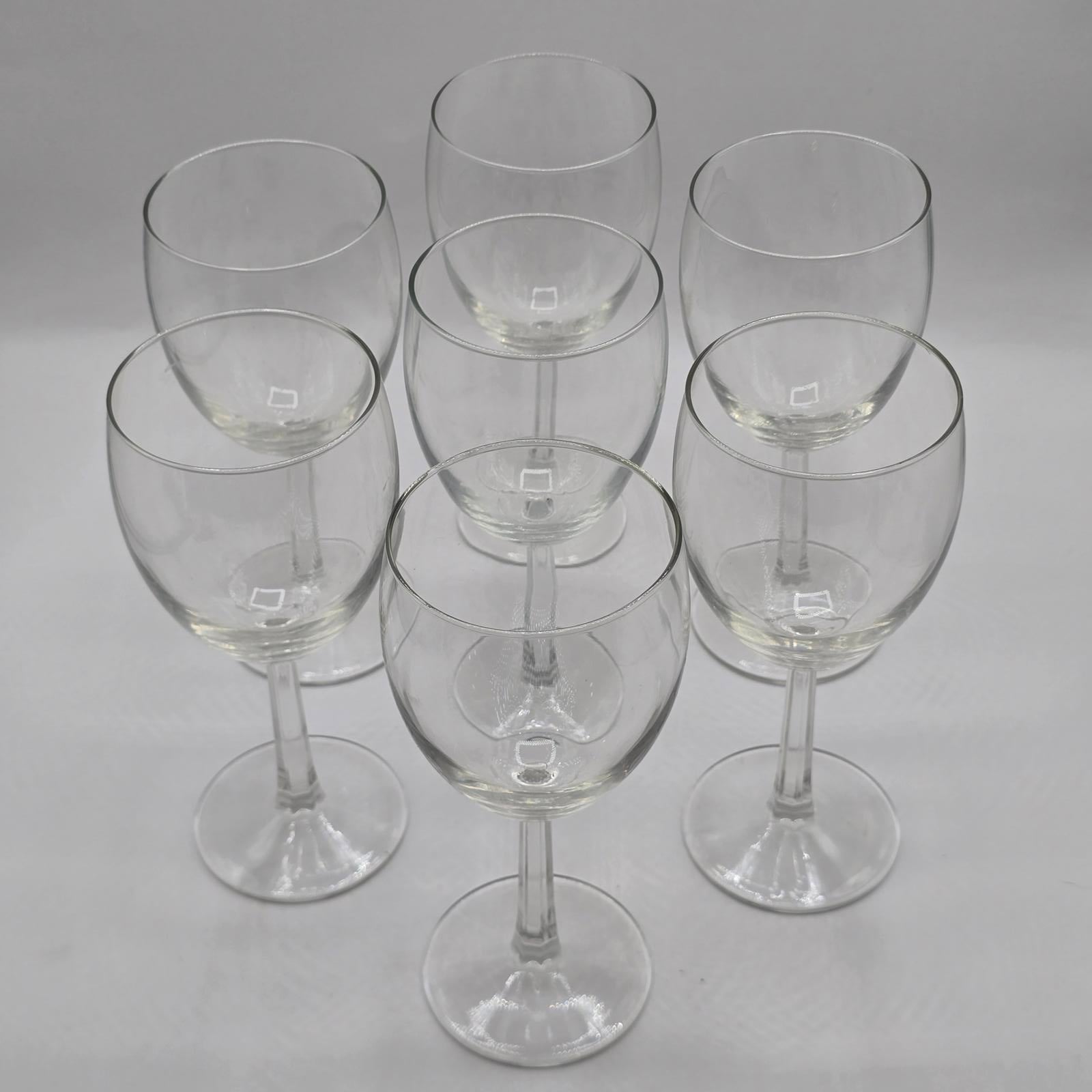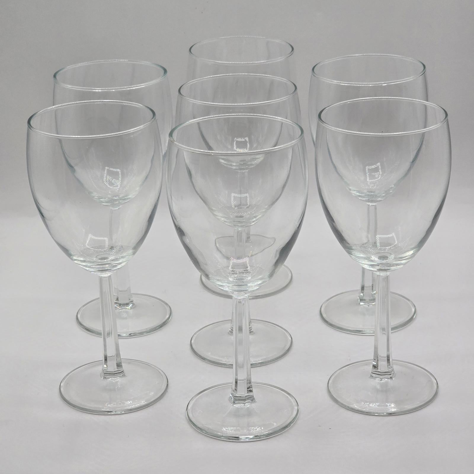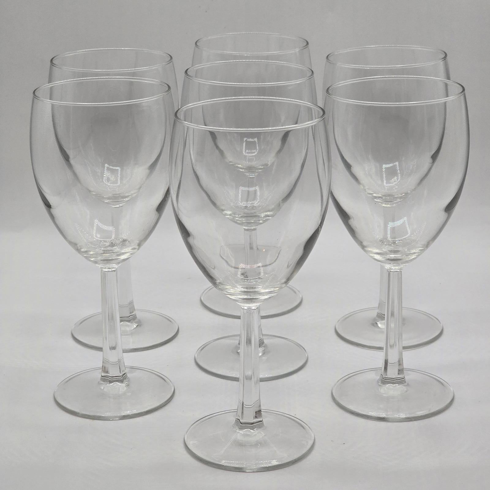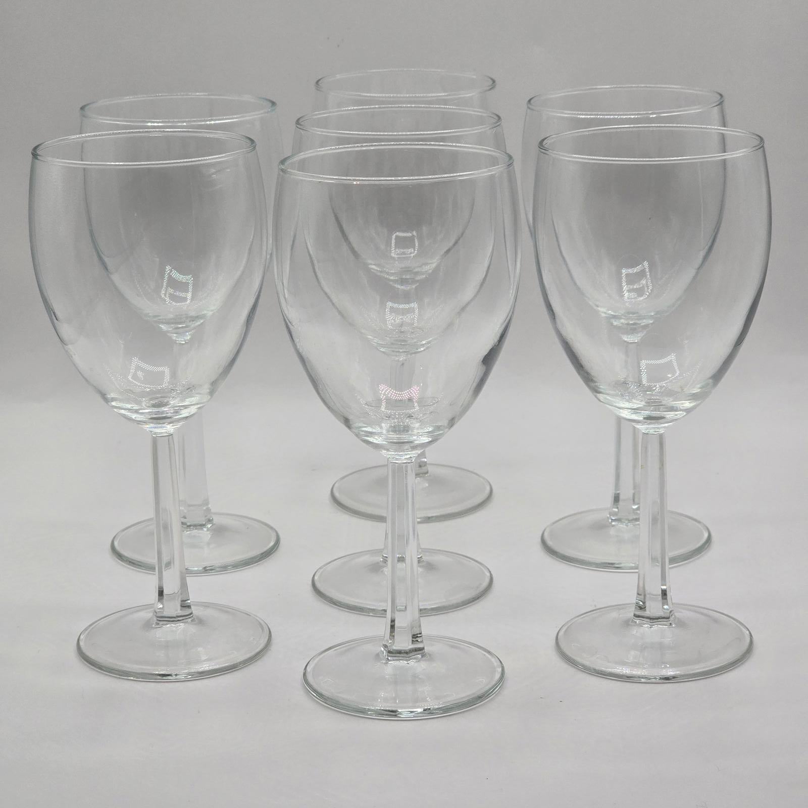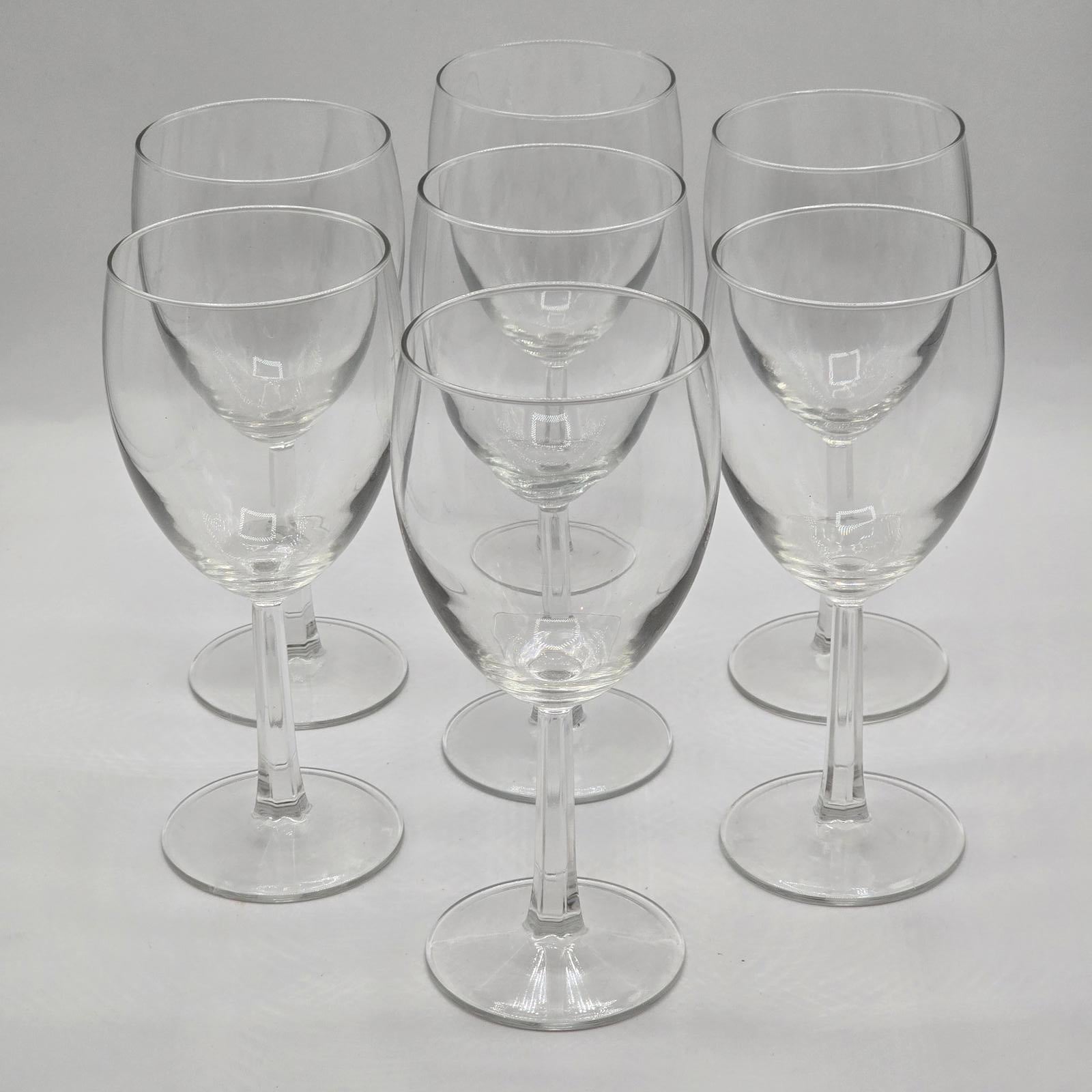 Set of 7 classic water/wine glasses. "Grand Noblesse" is a refined pattern of French crystal stemware known for its distinctive look with multi-sided stems. Treat yourself and your guests and set a beautiful table with these multifunctional glasses. 7-1/8" Tall. Made in France. Minimal wear consistent with age and use. Please refer to the photos as they are part of the description. The glasses are the same size but due to the angle of photos may appear different. 2 sets available.