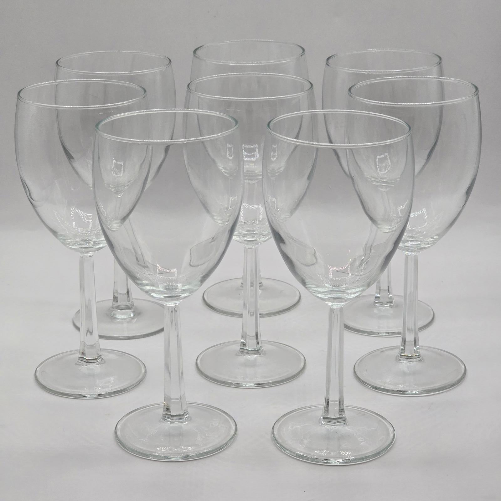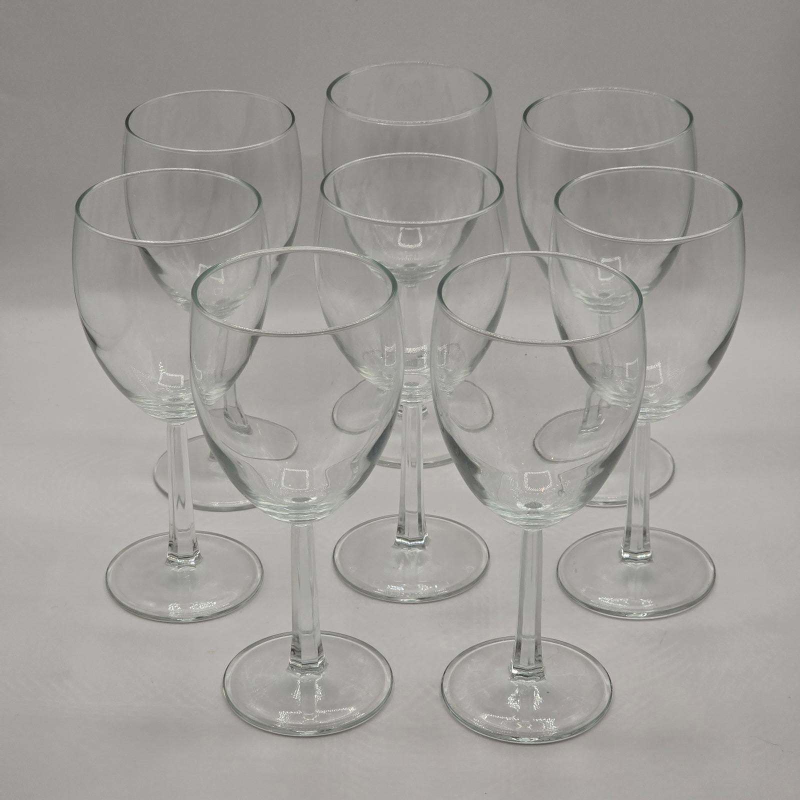 Set of 8 classic water/wine glasses. "Grand Noblesse" is a refined pattern of French crystal stemware known for its distinctive look with multi-sided stems. Treat yourself and your guests and set a beautiful table with these multifunctional glasses. 7-1/8" Tall. Made in France. Minimal wear consistent with age and use. Please refer to the photos as they are part of the description.