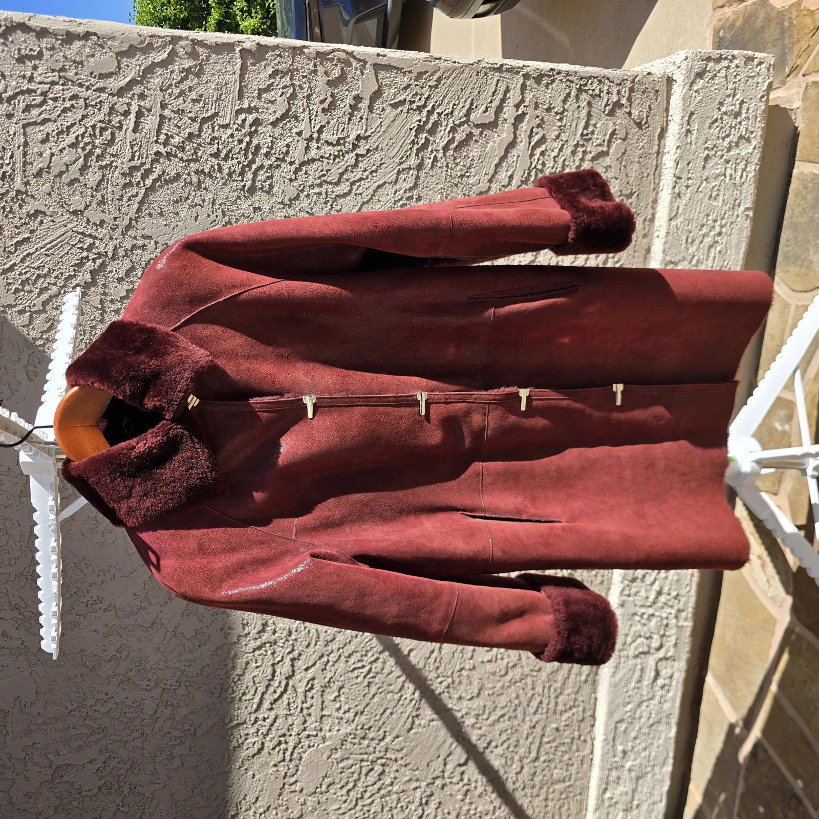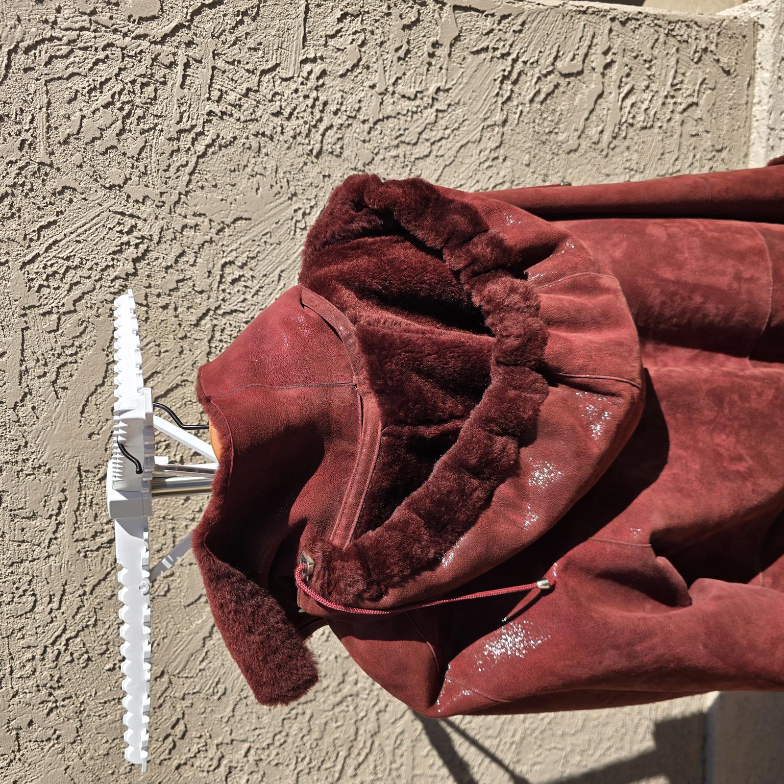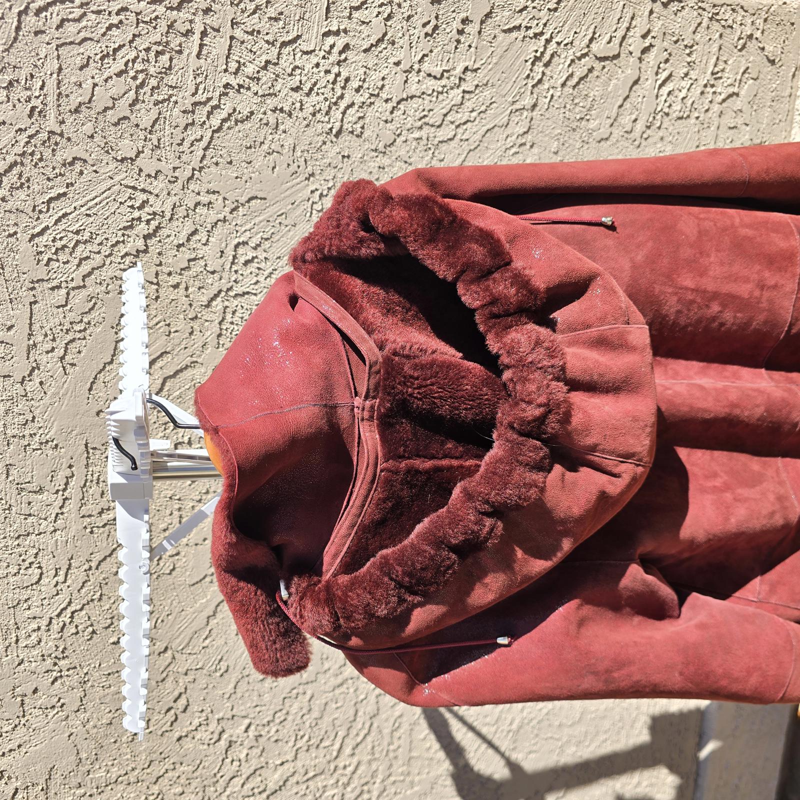 Designer Ilgazli Burgundy Genuine Shearling Lambskin Jacket w/ Detachable Hood