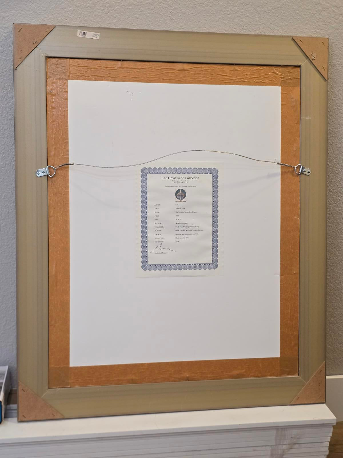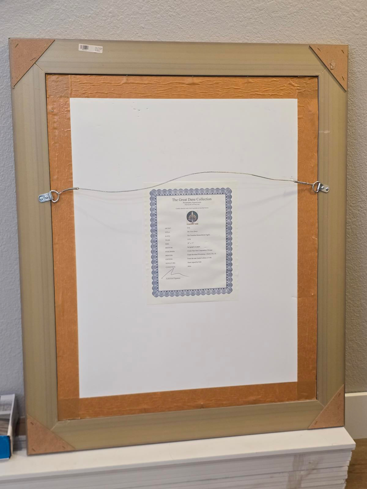 One of Erte's most famous art-deco images and a beautiful piece to add to your collection. Rare limited-edition serigraph numbered 257/300 in the lower left corner and hand-signed by the artist Erté (Romain De Tirtoff), in the lower right corner. Museum quality frame with nameplate and COA on reverso. The art is in mint condition and the frame shows minimal wear. Framed with lightweight, shatter-resistant, advanced plexiglass which can block UV rays. The plexiglass has a few minor scratches. 1978. Retail value $6500. Image measures 21" x 16.75". Frame 35.75" x 29.75". 9 lb 10 oz