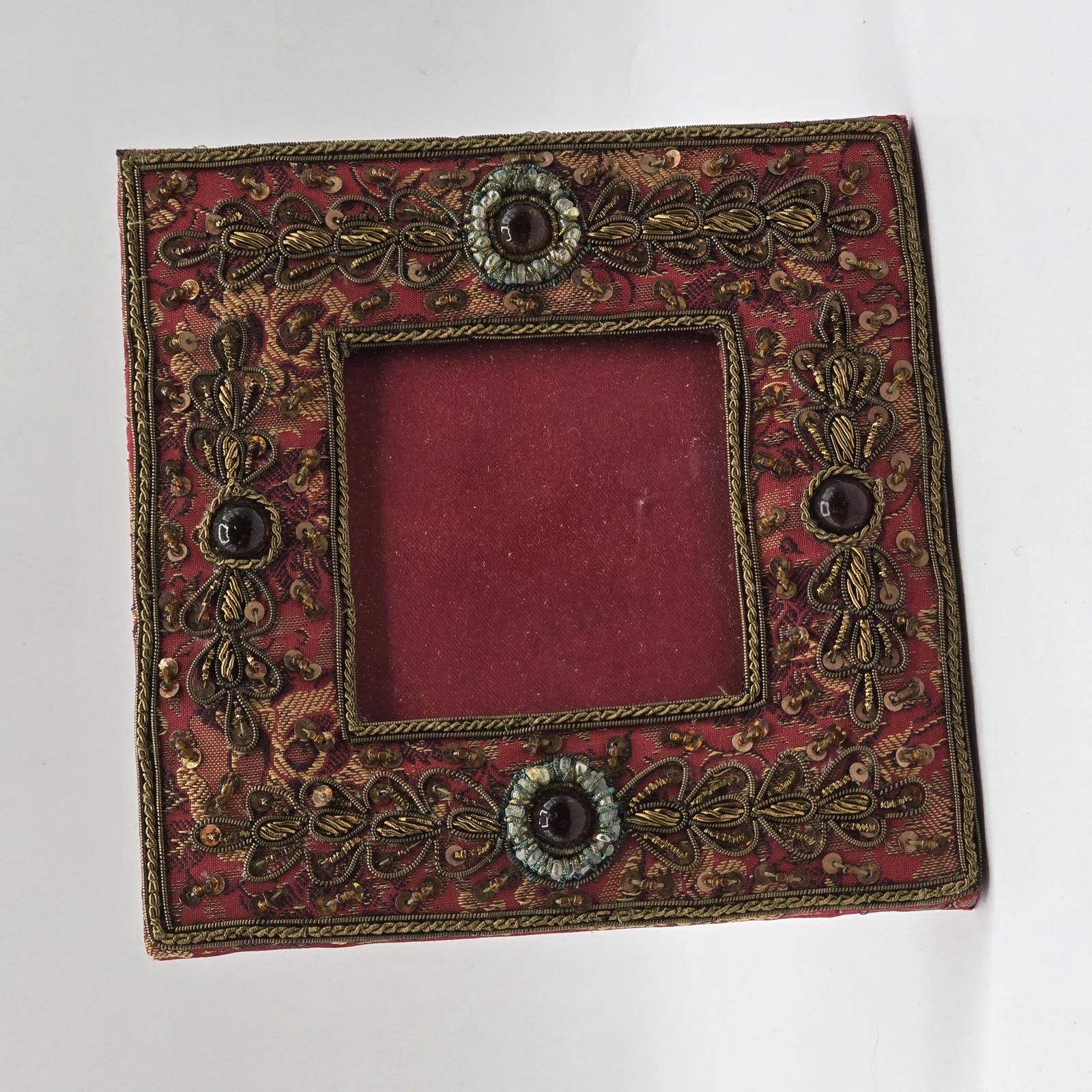 Charming, handcrafted frame for your favorite picture. Interior measures 3"x3". Please refer to the photos as they are part of the description. Approximately 6.25"x 6.25" exterior.