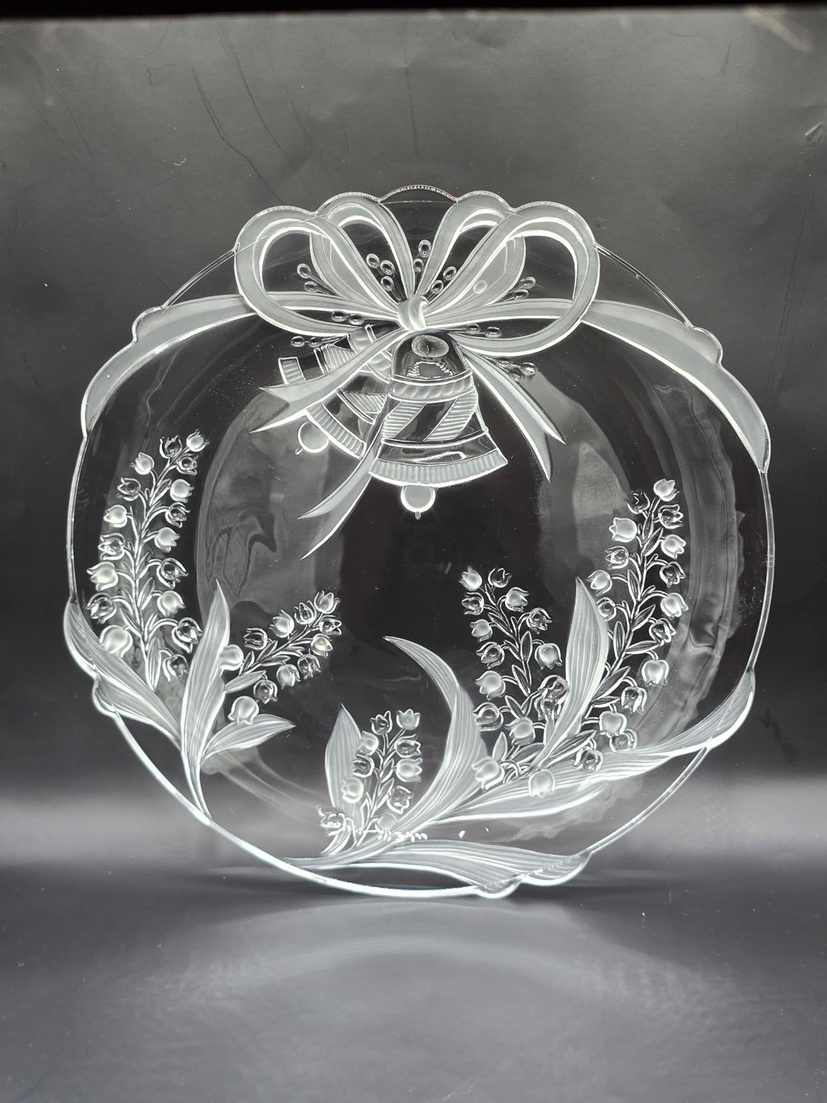 Ornamental platter with bows wrapping around the bells and mistletoe. Perfect for Christmas cookies. Not footed, no cracks/chips. 4 lb 12oz