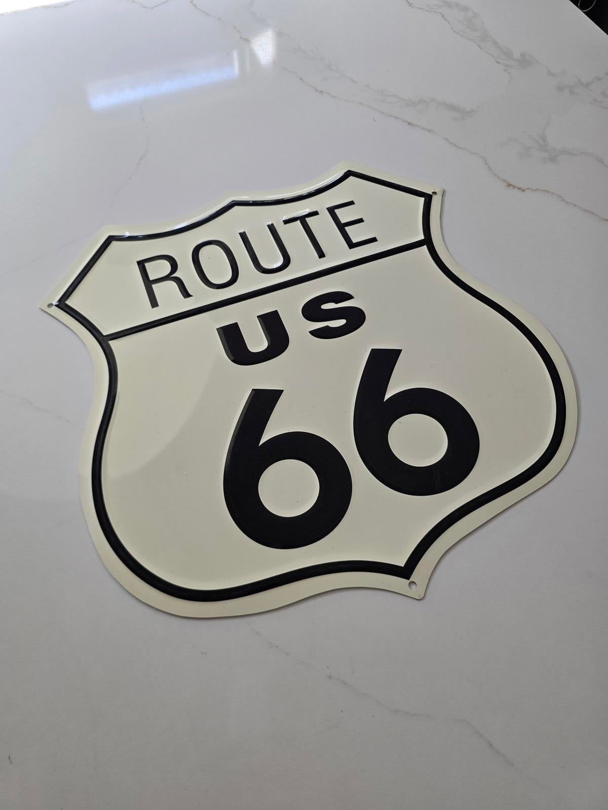 Iconic Route 66 metal road sign. 13.5" x 13.75".