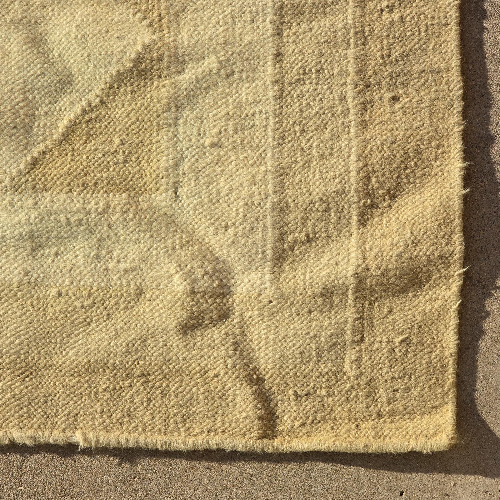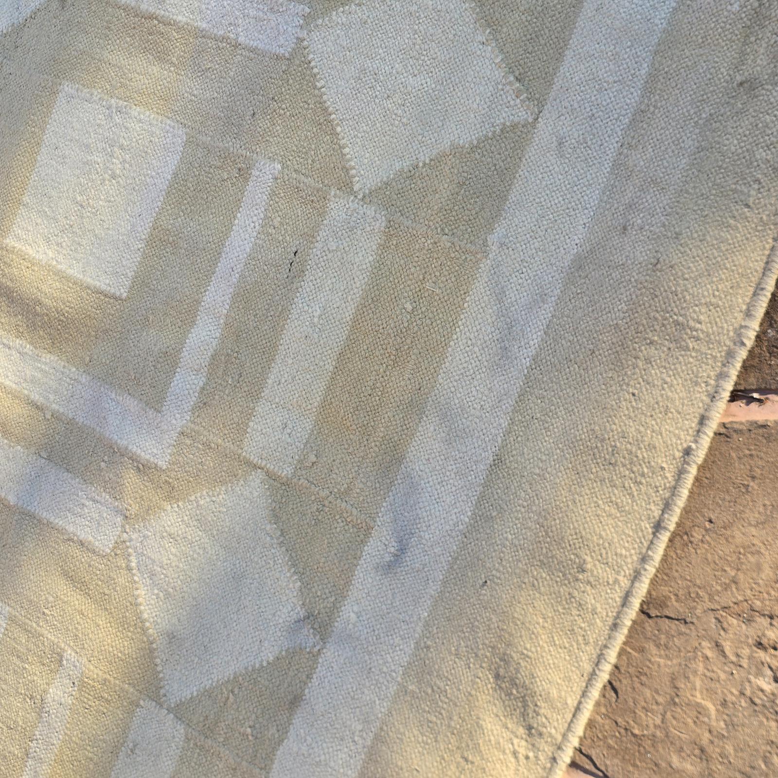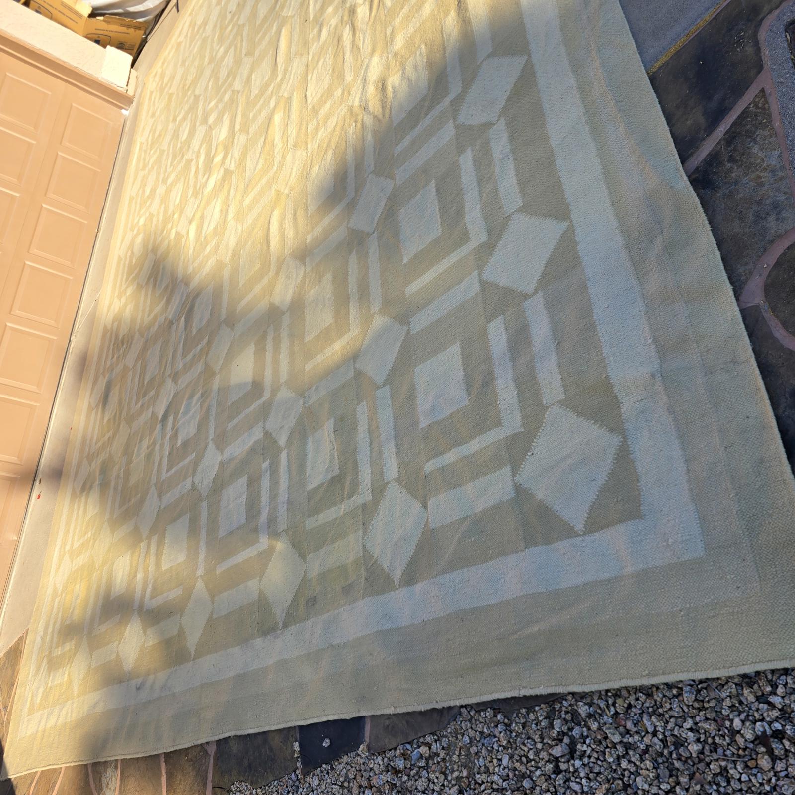 Vintage, hand-woven Dhurrie rug is perfect for a great-room or larger living spaces. Distinctive flat-weave texture, neutral colors, and pattern will complement your decor. Good condition. Has been in storage so would recommend cleaning which will freshen and help alleviate creases from being folded. Rug pad also recommended. Please refer to photos as they are part of the description. 17'11" x 13'8".