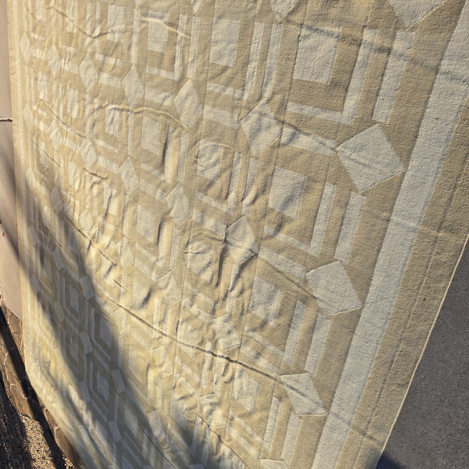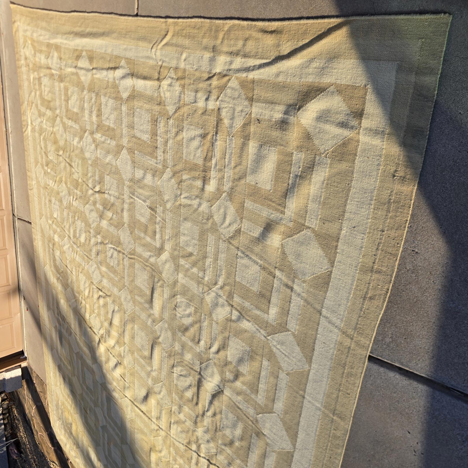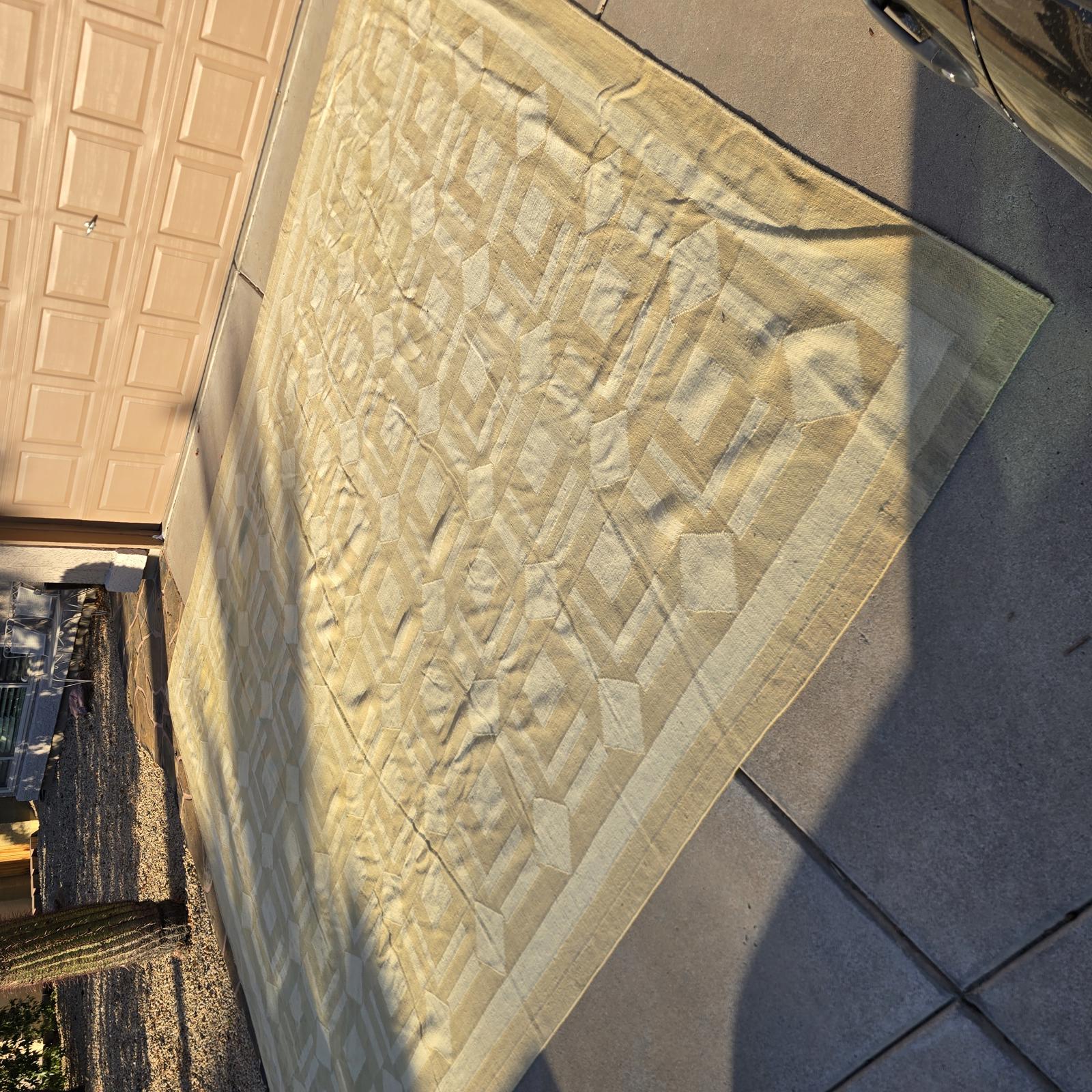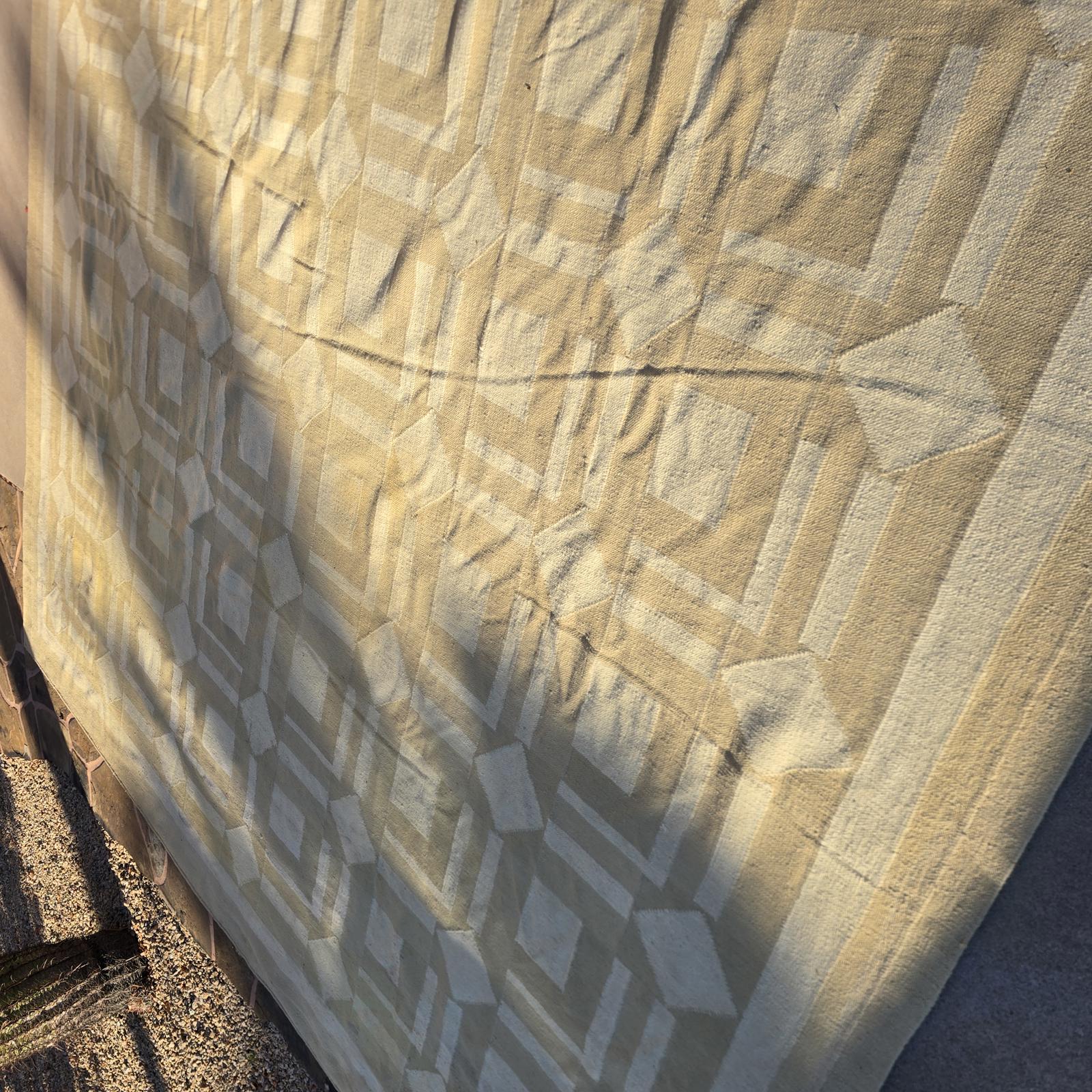 Large Indian Dhurri Geometric Rug -Cream and Tan