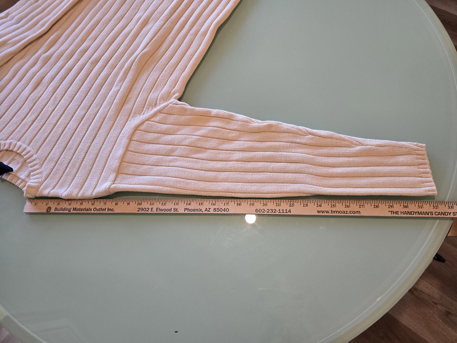 Cream color, 100% cotton crew neck sweater with cable accents. XL