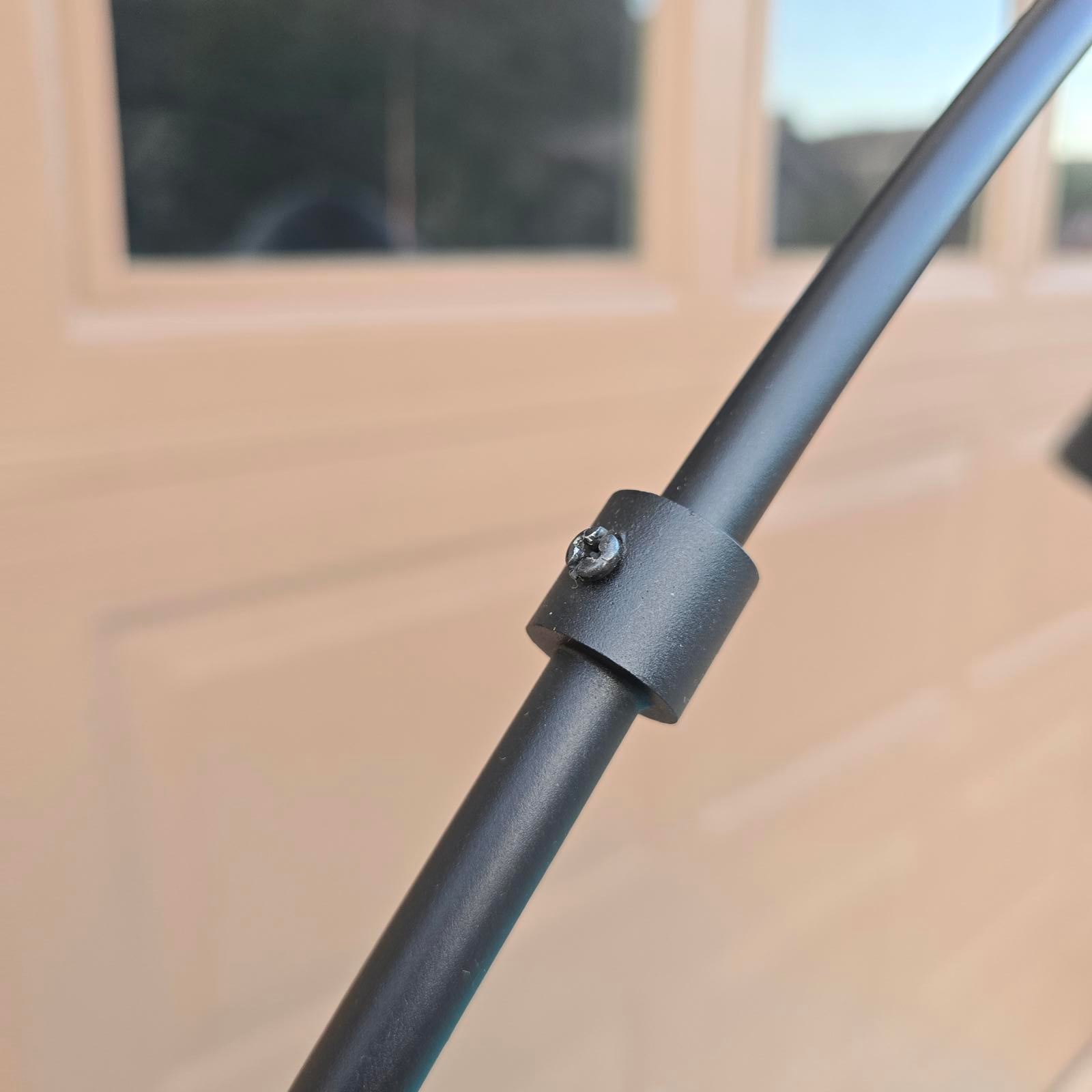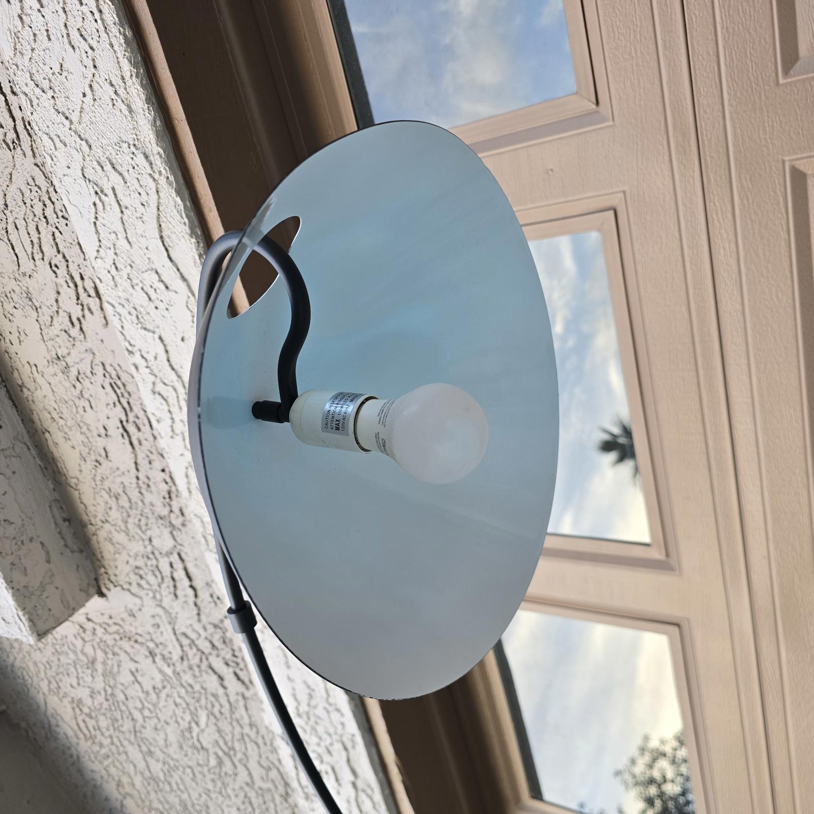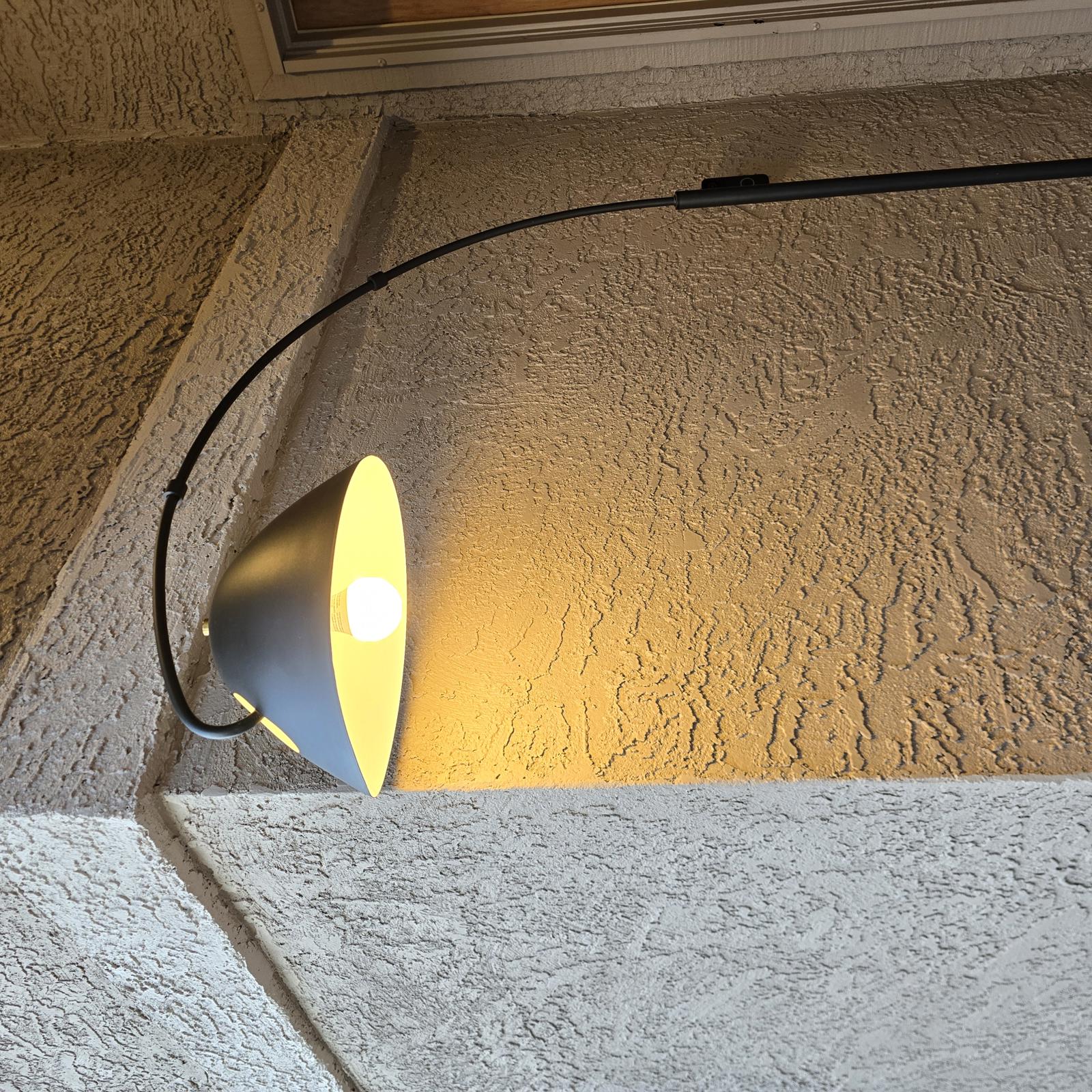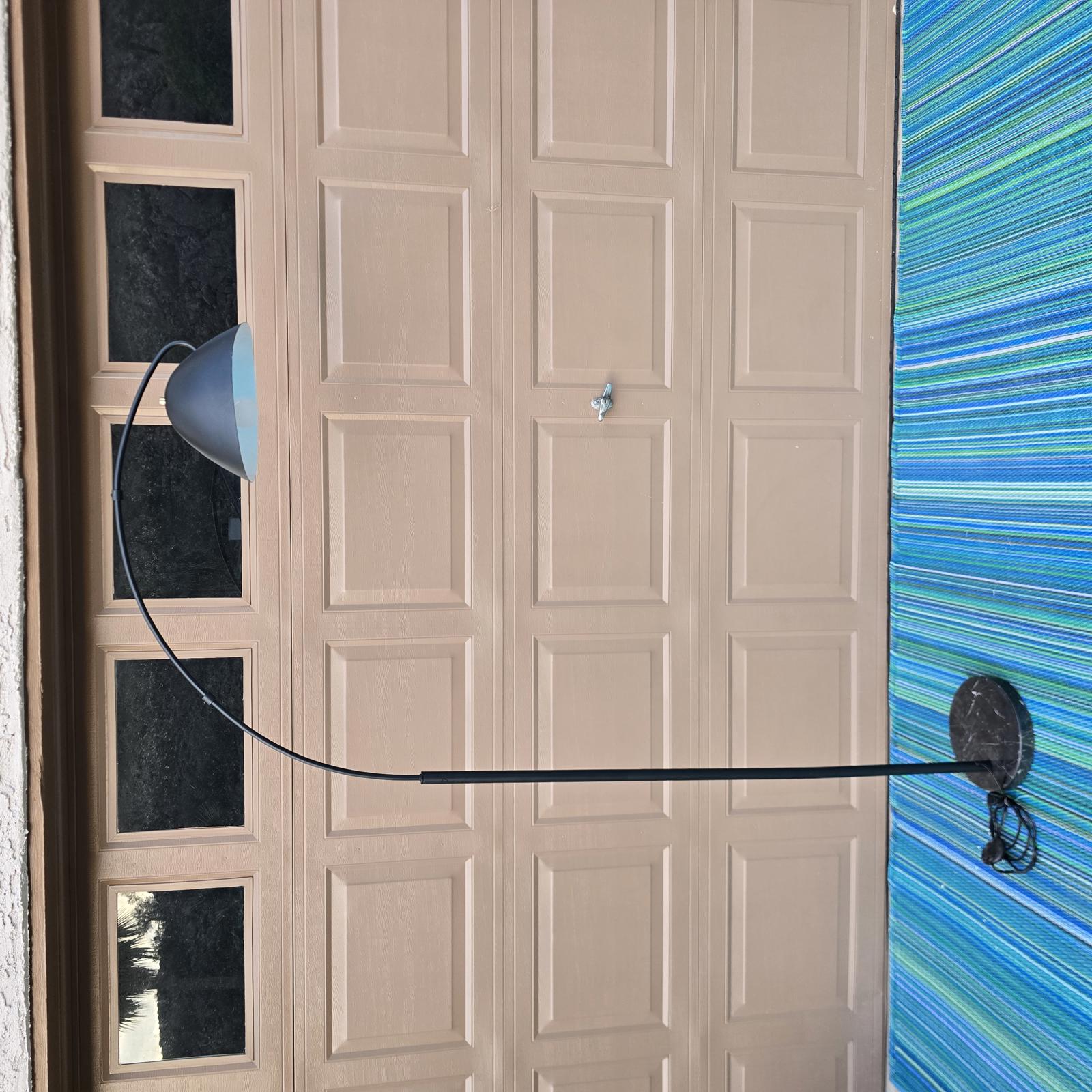 Chic black arc lamp has a curving silhouette and a modern flair. This will look great accenting you furniture and lighting up your room. Approximately 75" tall. Good condition with minimal wear consistent with age and use. Please refer to photos as they are part of the description.