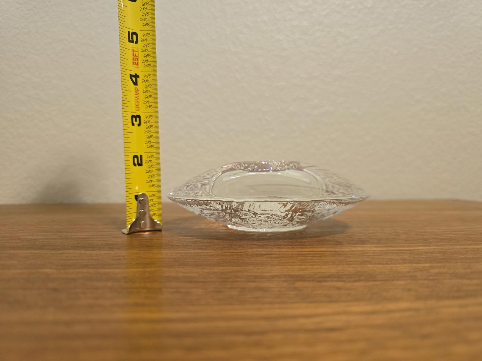 Designed by Lars Hellsten, this beautiful crystal tea light votive was created for the World Athletic Championship. Minimal wear from typical use. 5.25" W x 5.25" D x 1.75" H