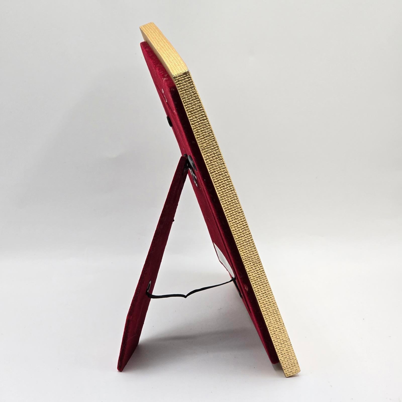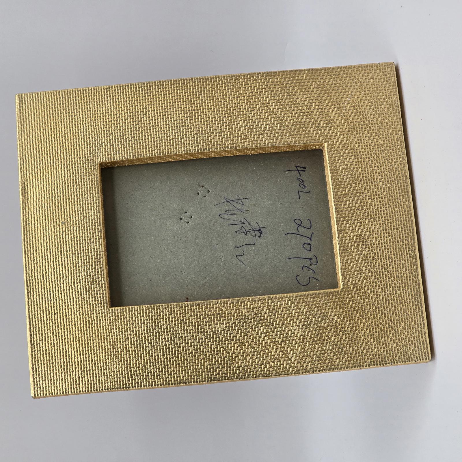 Gold-finish, matte textured frame for your favorite 4"x6" picture. Please refer to the photos as they are part of the description. Approximately 7-1/16" x 9-7/8".