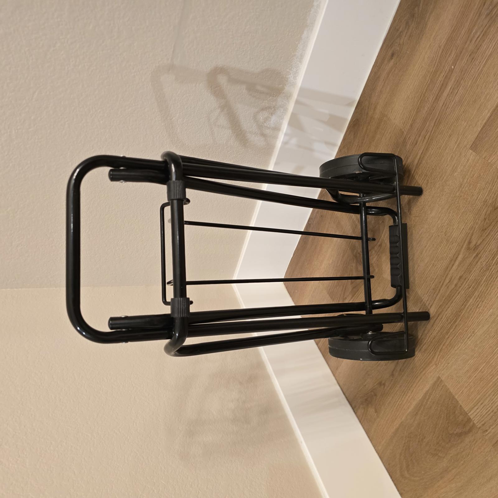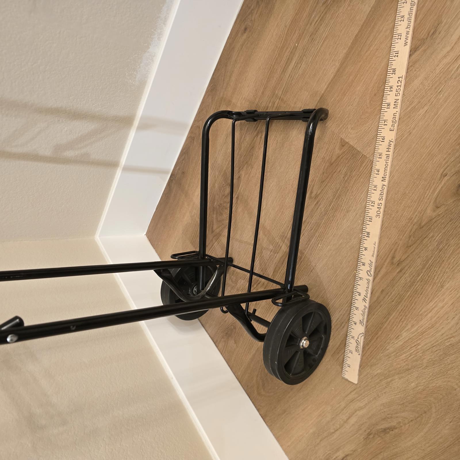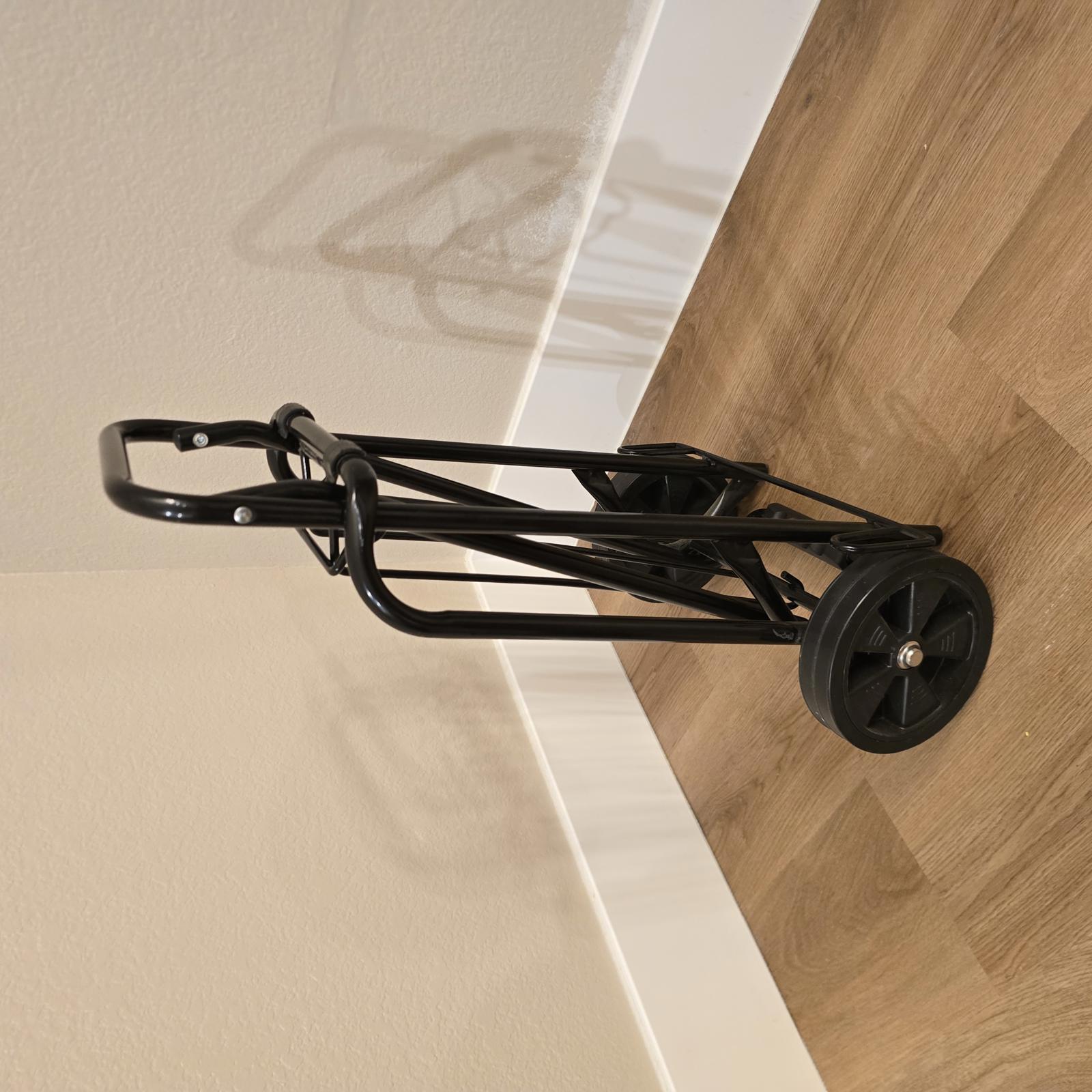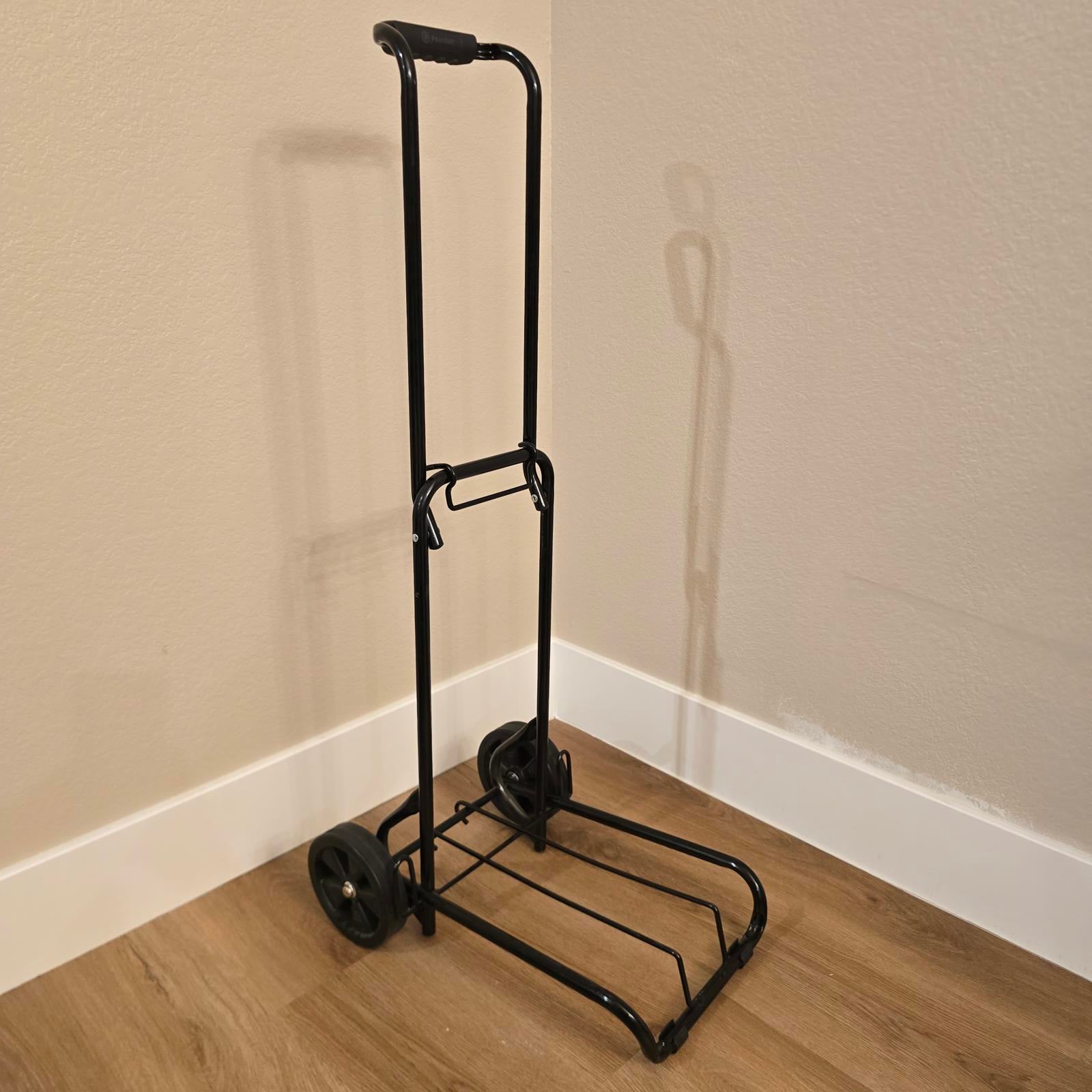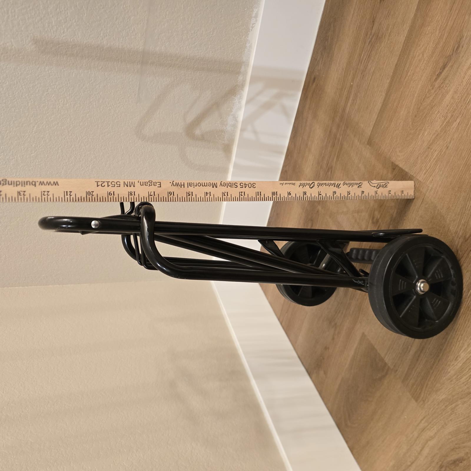 Protege metal folding luggage cart. Weighs 3lbs and has a 75 lb carrying capacity. 39" x 13" with 15" platform
