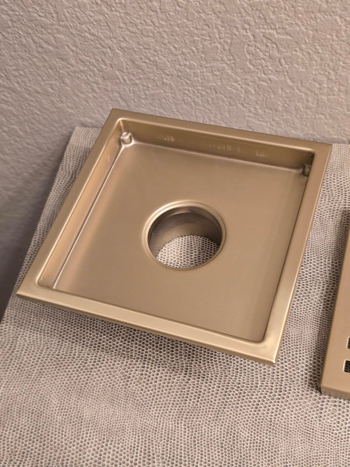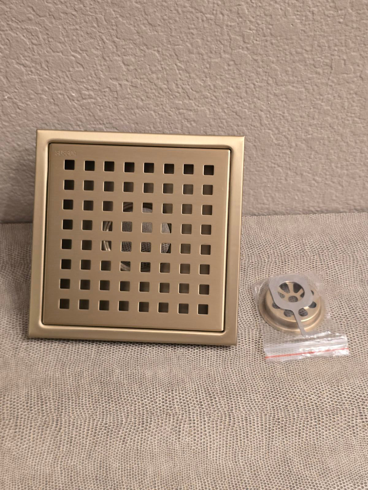 Quality 304 Stainless Steel 6" Square Shower Drain - Brushed Gold Finish