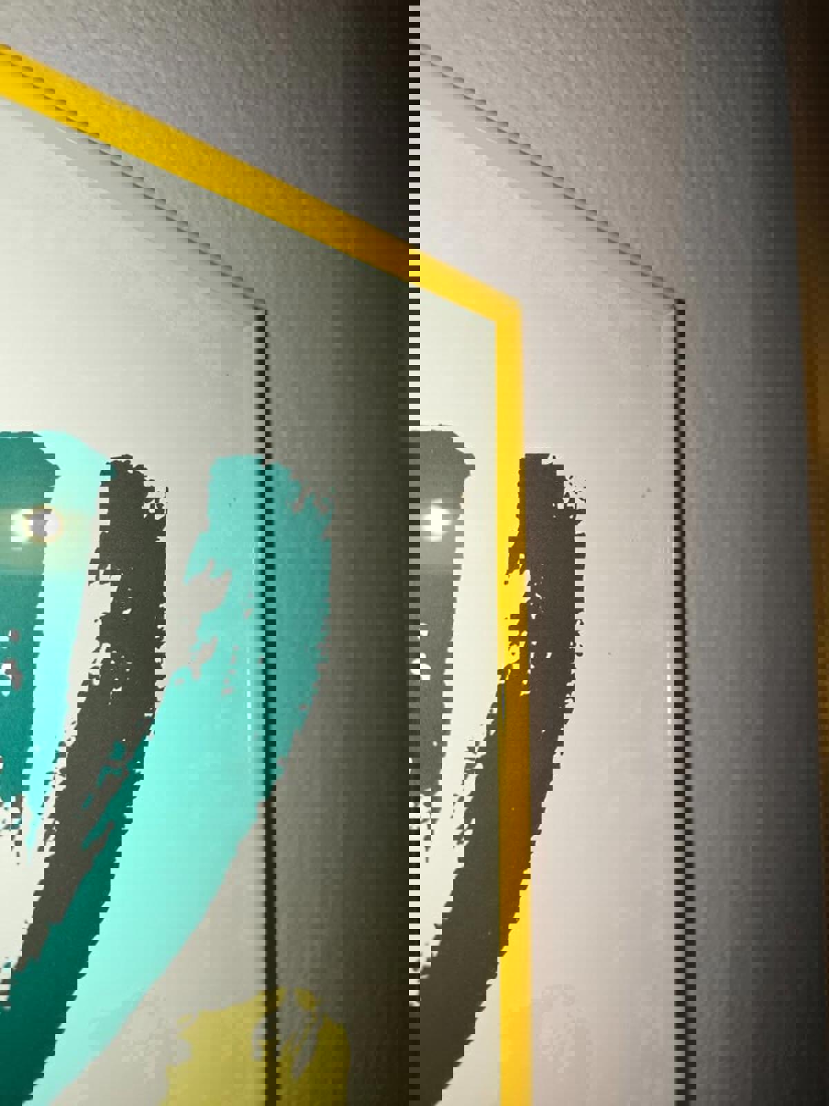 Iconic, collectable Offset Lithograph, signed by Sister Mary Corita Kent. Printed by Haddad's Fine Arts to commemorate The "Corita Exhibition" at Muirhead Galleries, Costa Mesa,California in December 1978 and features her 1971 Serigraph "Much" Measures 23.25" wide x 29.25" tall. Frame has a few small scuffs and scratches. The print may be dry-mounted, there is some discoloration around the edge of the poster inside the frame. Could be the adhesive drying out behind the print.