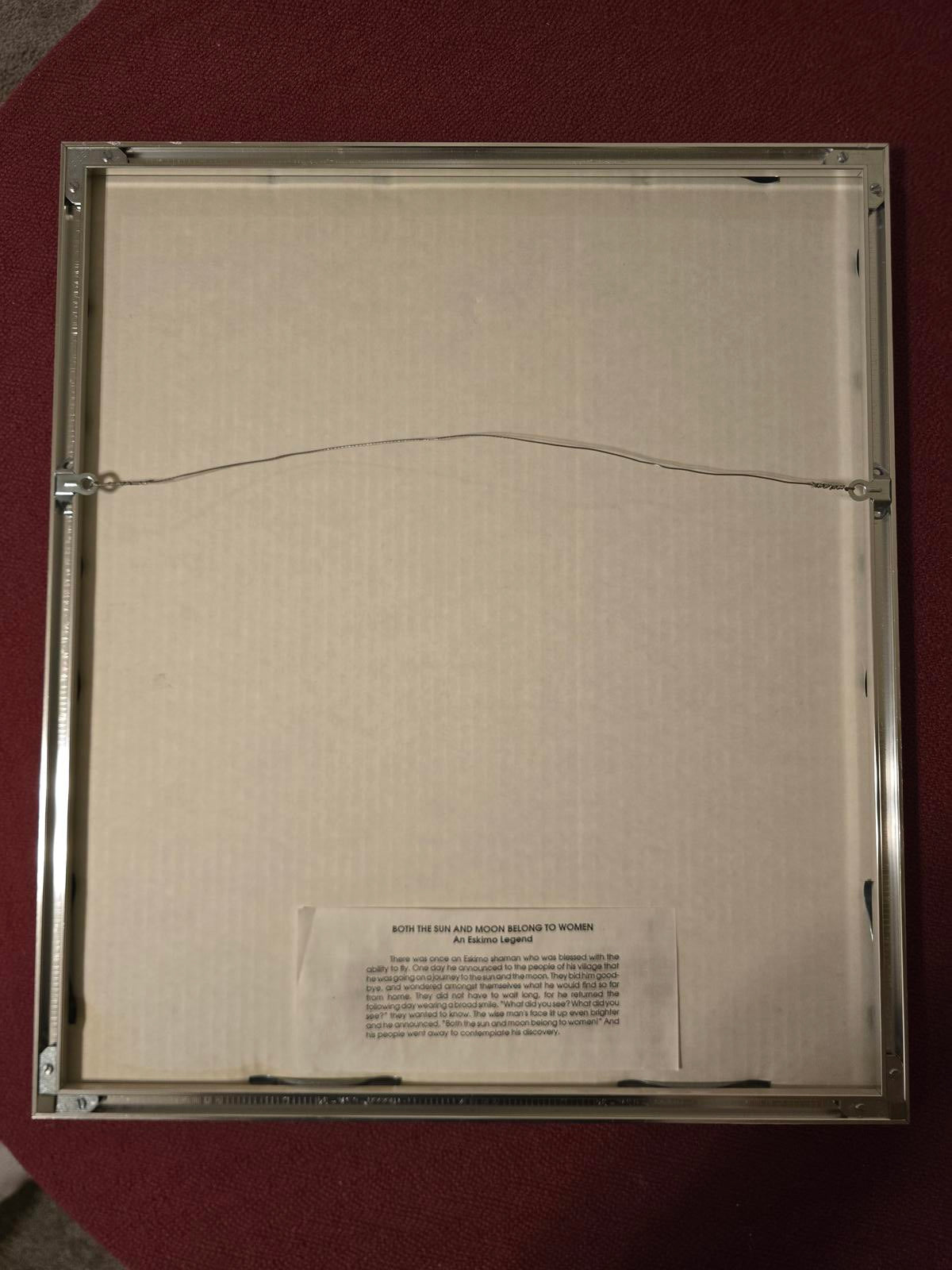 Rie Muñoz (1921-2015) was a celebrated Alaskan artist known for capturing the landscapes, people, and culture of Alaska in her work. Silver-tone frame with glass and print description on the back, in very good condition. A vibrant and fun print. 21.875" x 19"