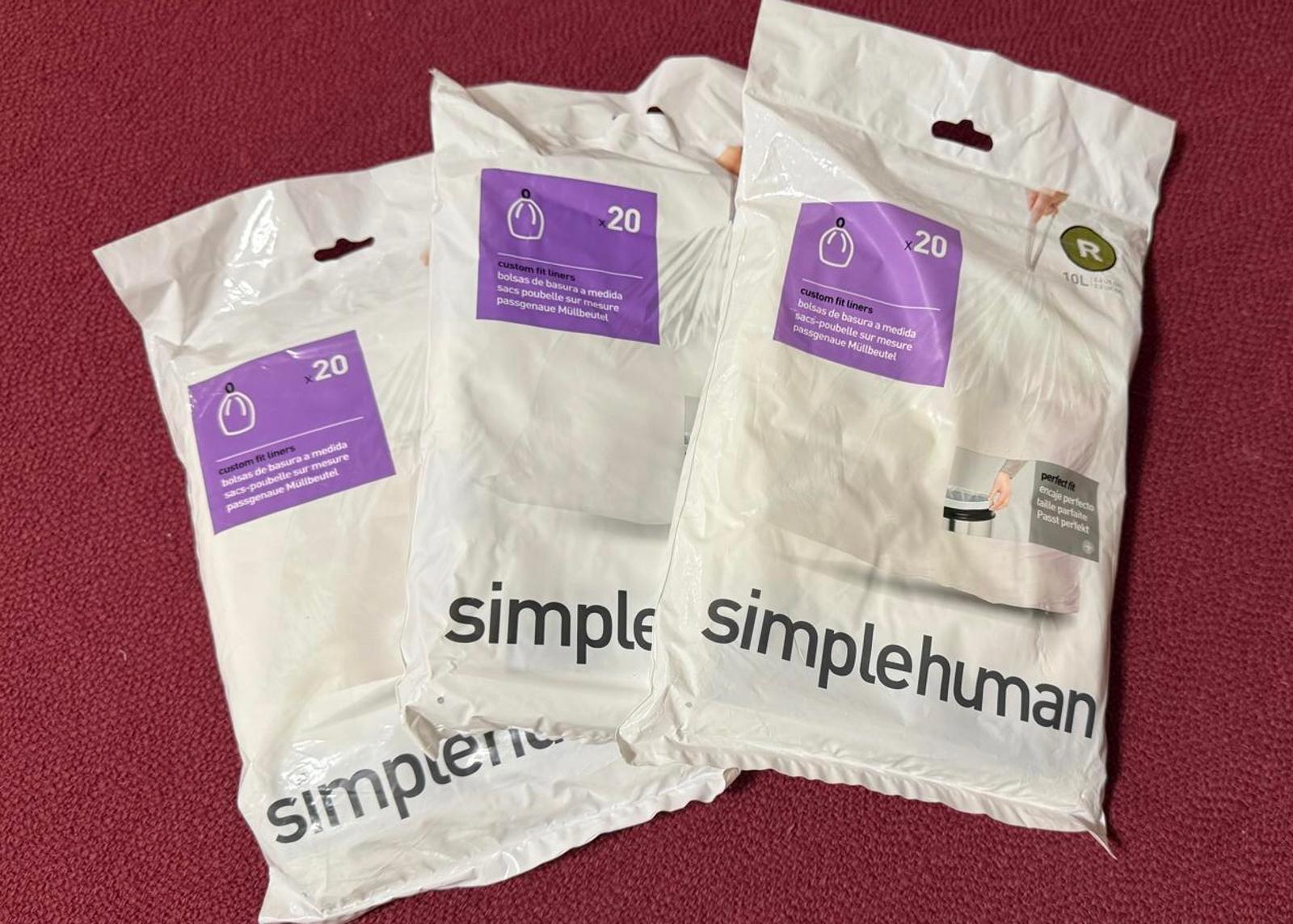 SimpleHuman 2.6 Gallon Half-Round Waste Basket and 60 Drawstring Trash Bags