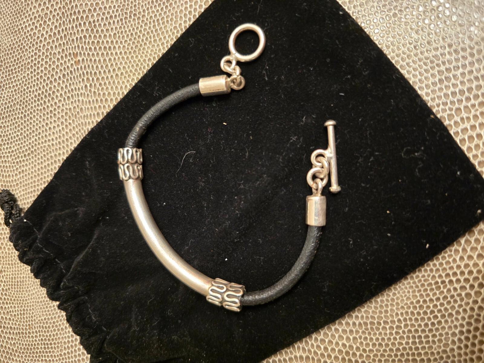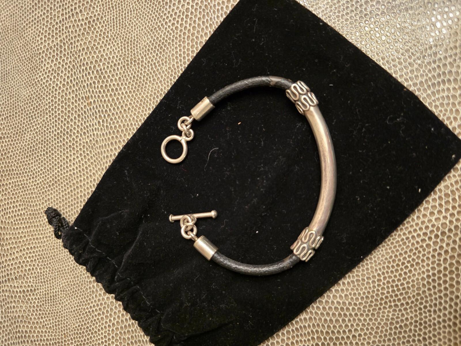 Beautiful Accented Sterling Silver and Black Leather Bracelet. Great for Mom or the new grad. Measures 7".
