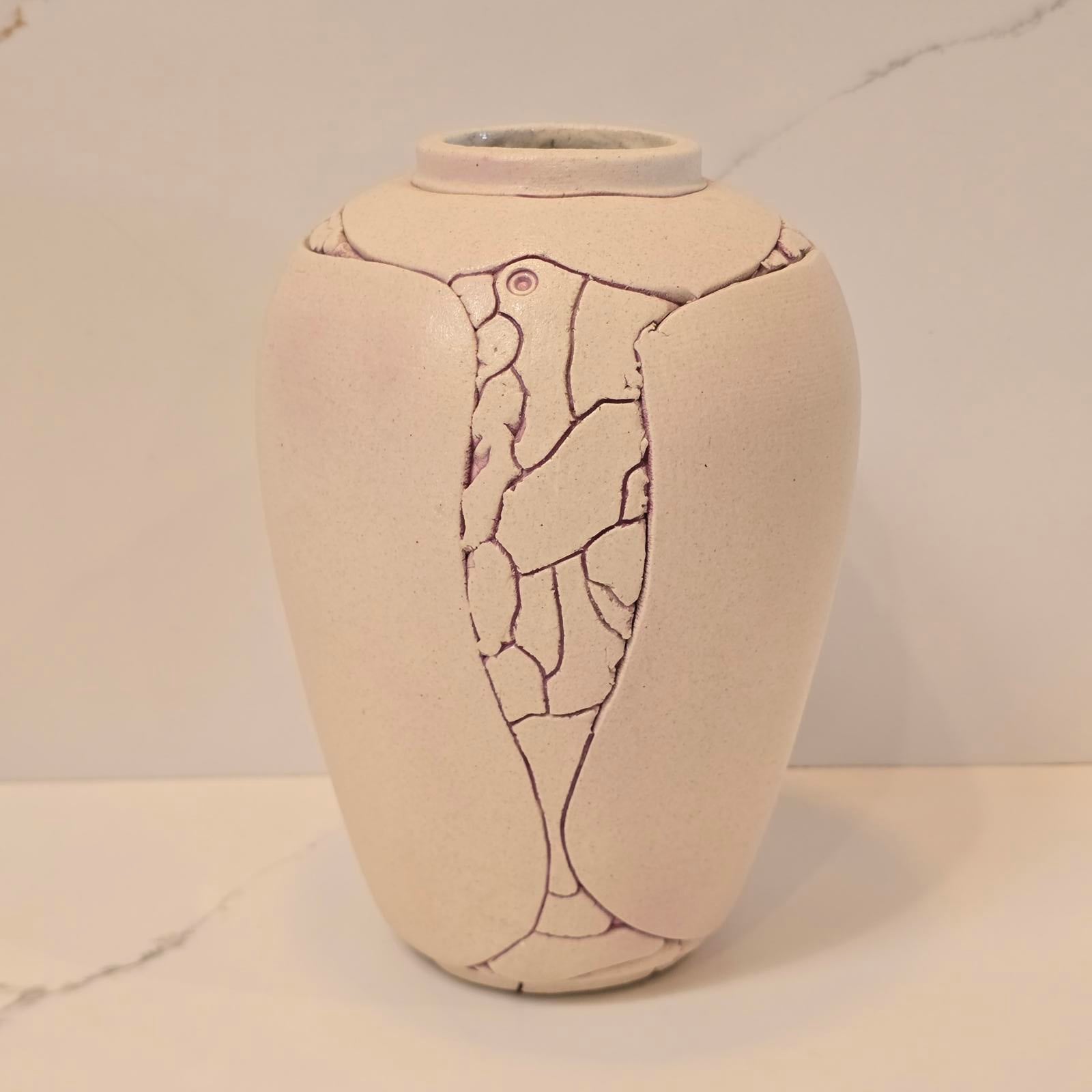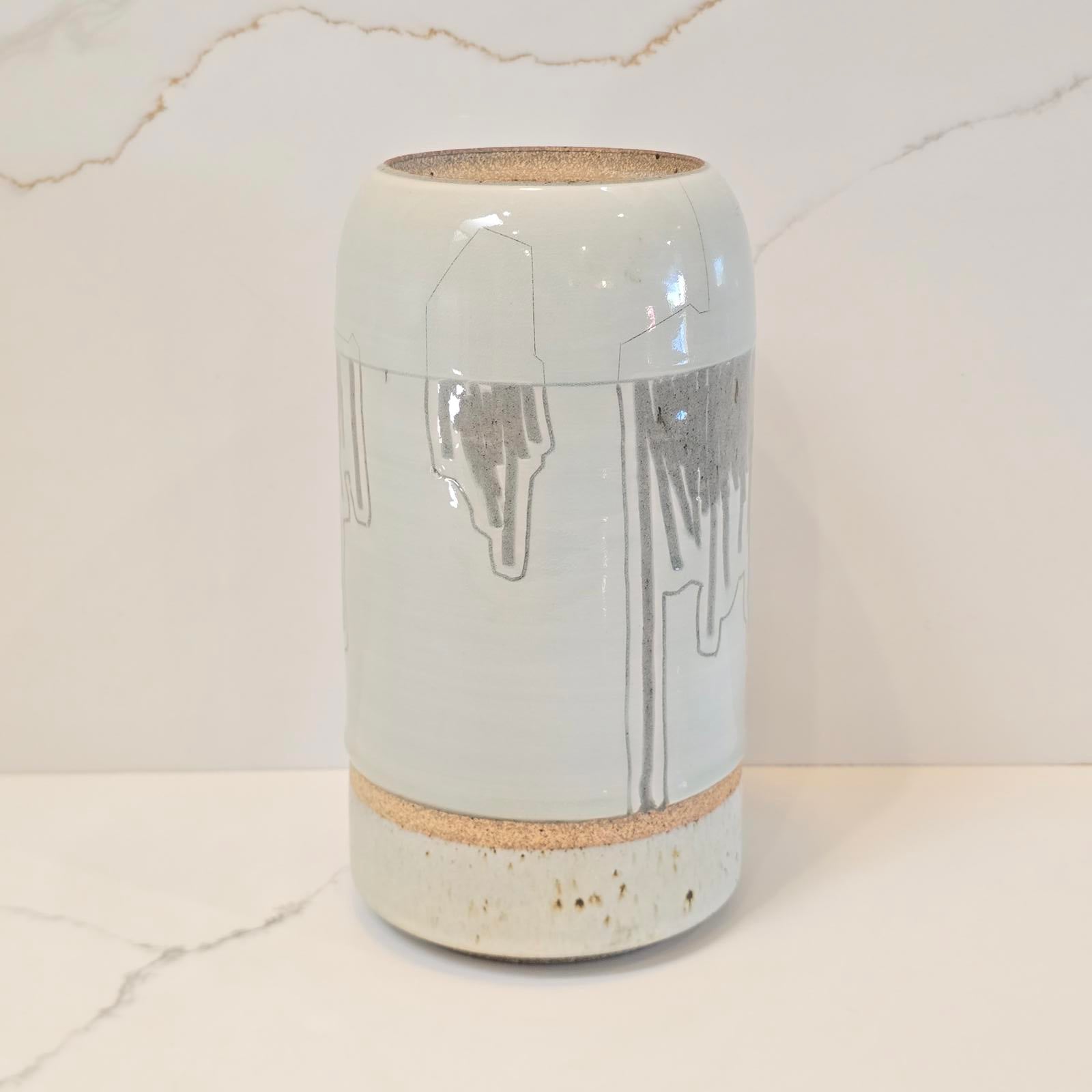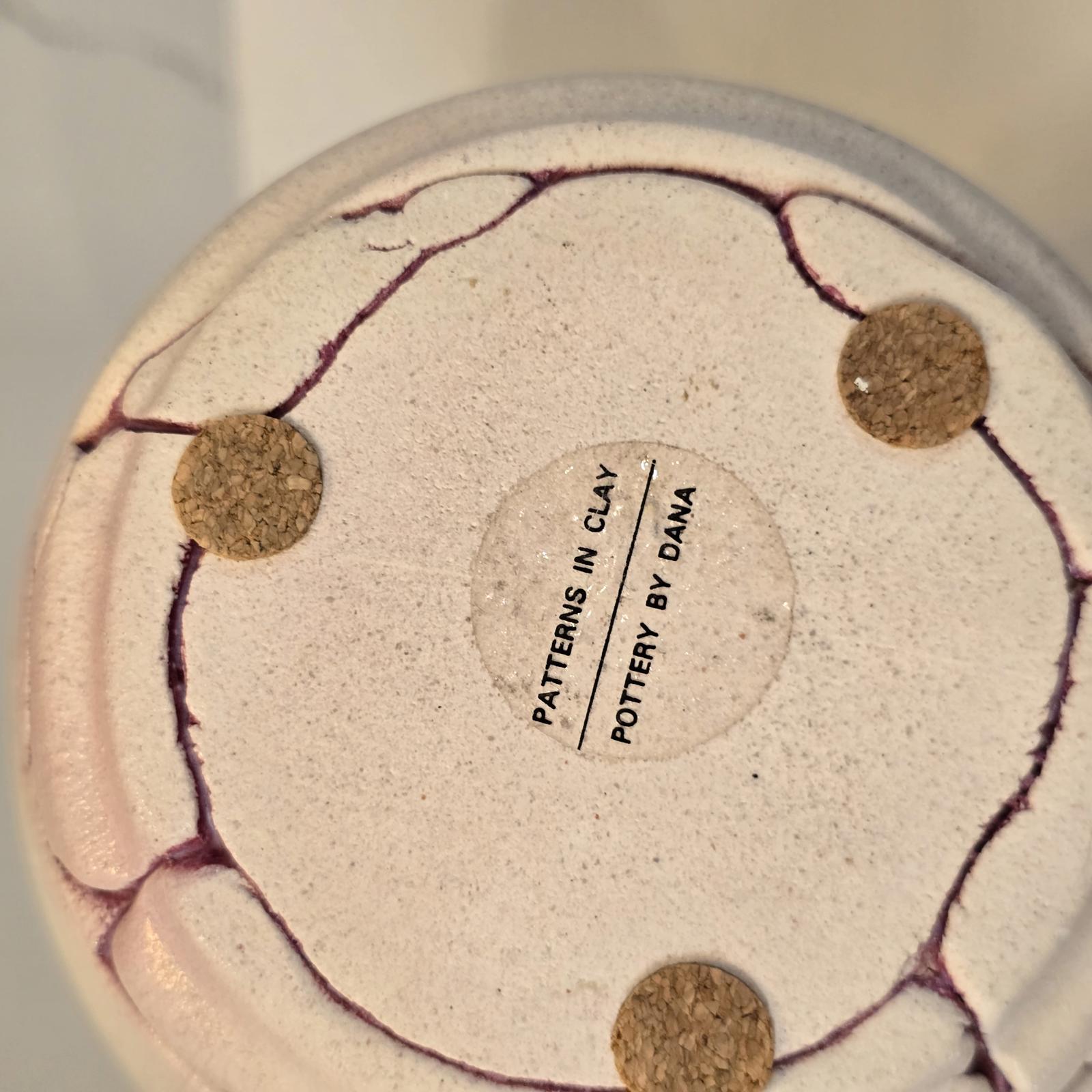 Etched white pot by Dana 9.25"T x 6.25"D- $30.
