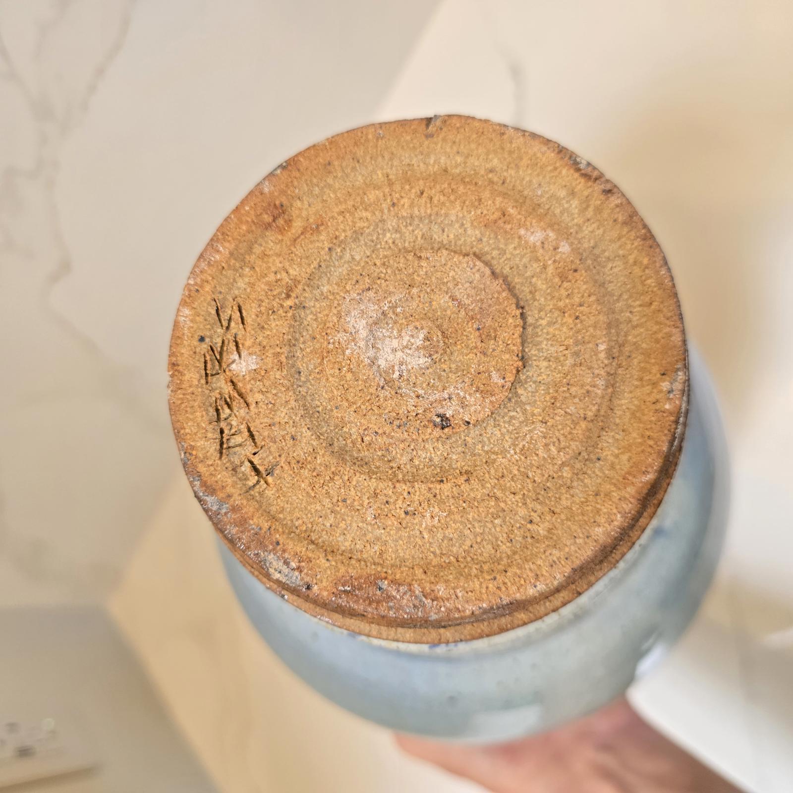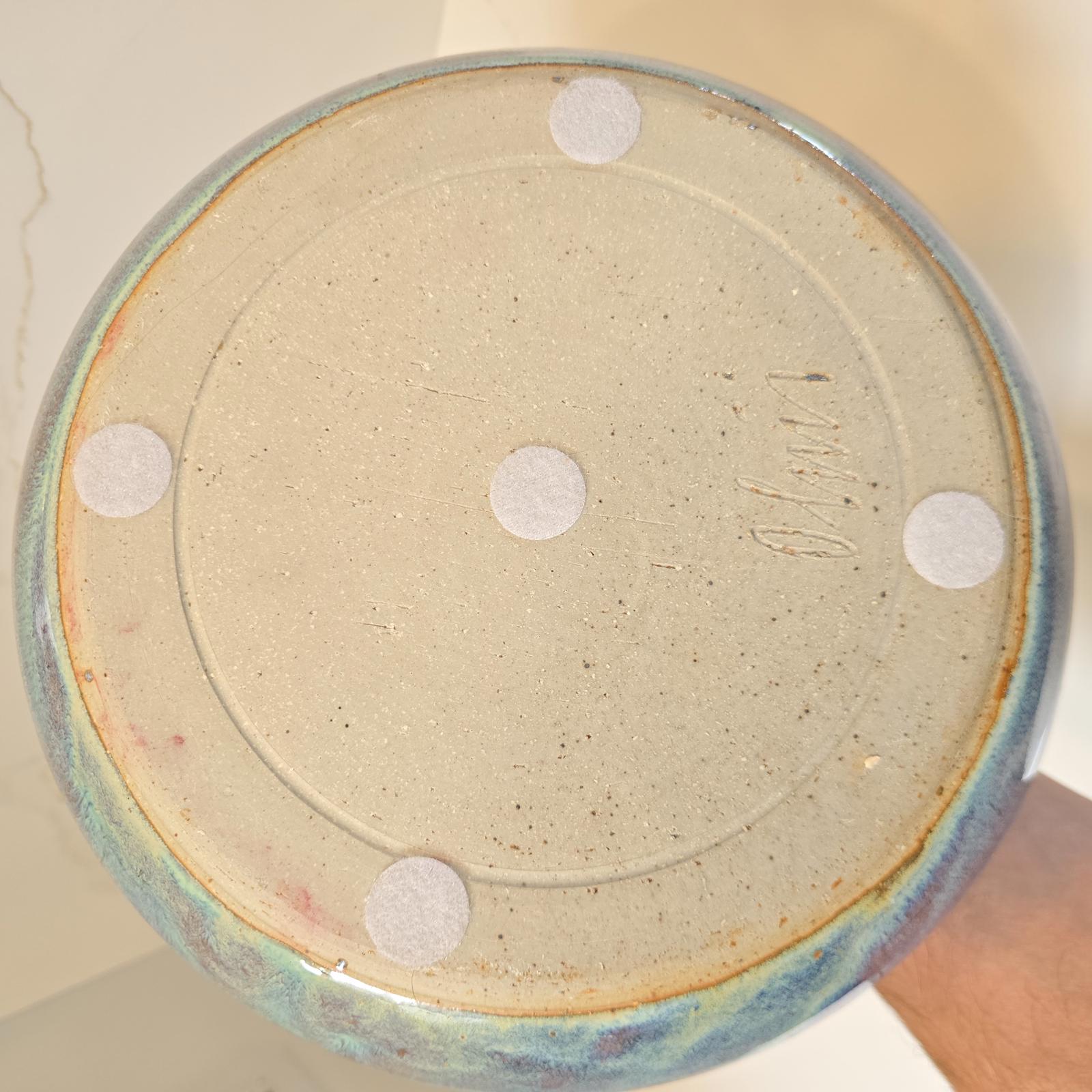 Large blue drip glaze jar with ridged base 10.25"T x 7.25"D- $55.