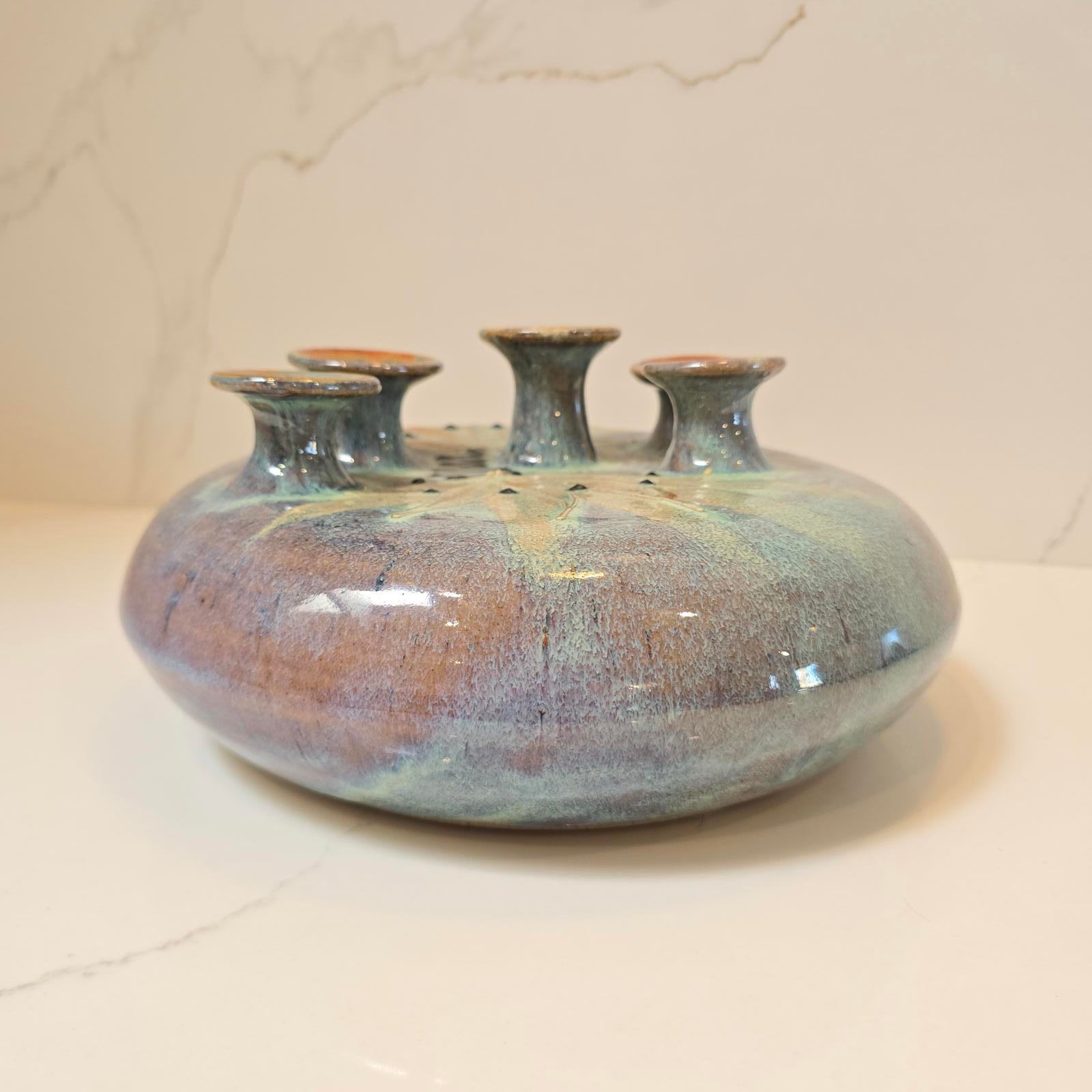 Floral centerpiece/candle or bud holder 10"D x 4.75"T- $55.