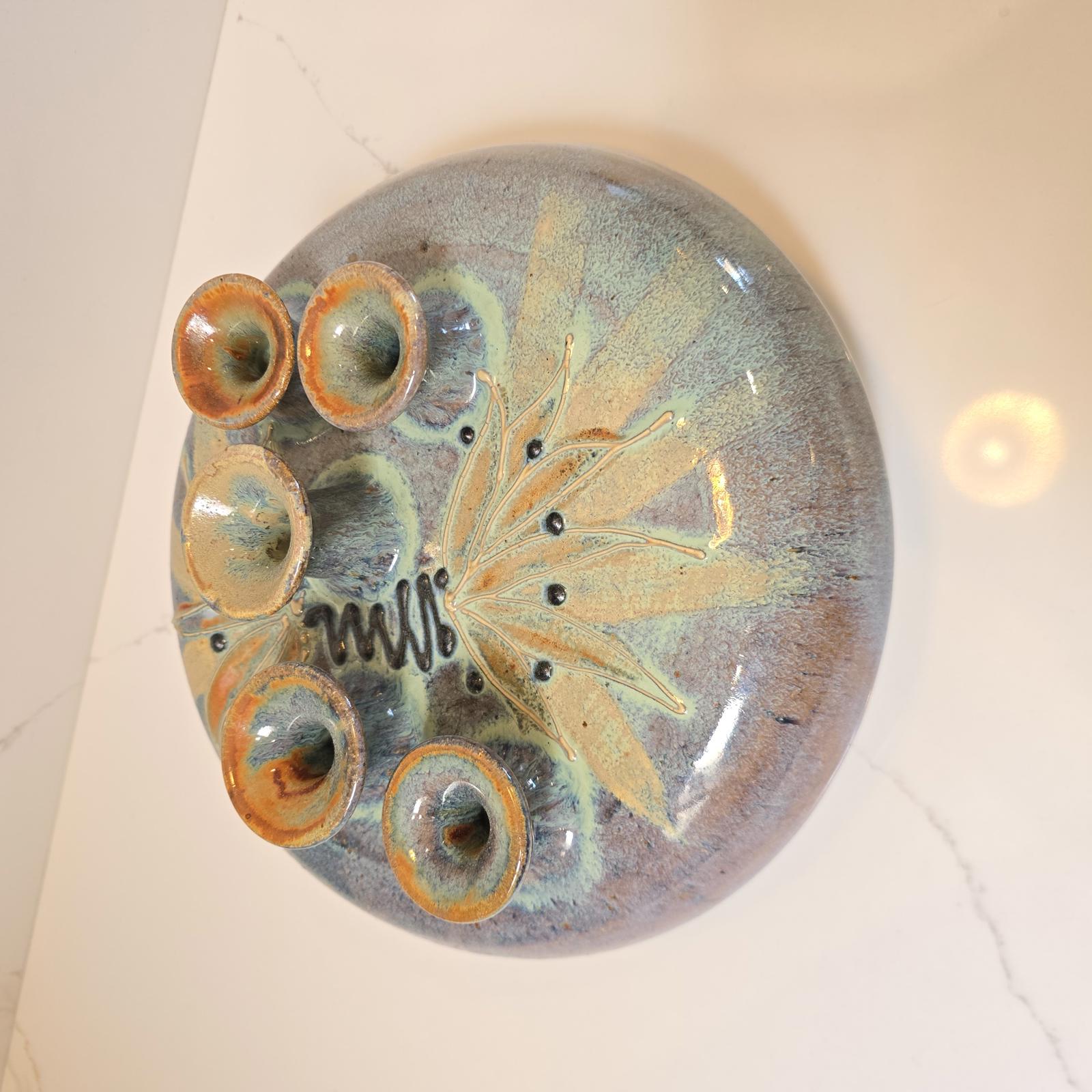 Unique artist signed pieces in good condition with no chips or cracks. Great for entertaining, every-day use, and display. Please refer to photos. Approximate measurements.