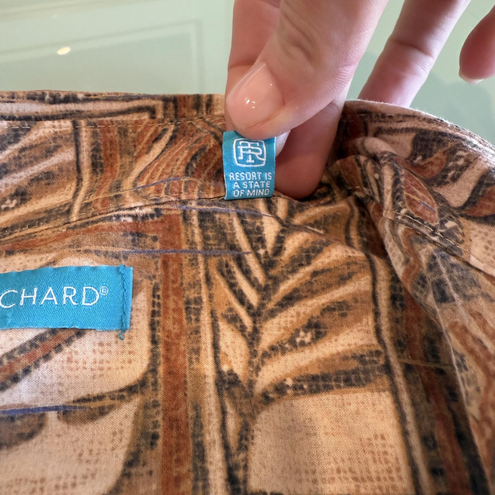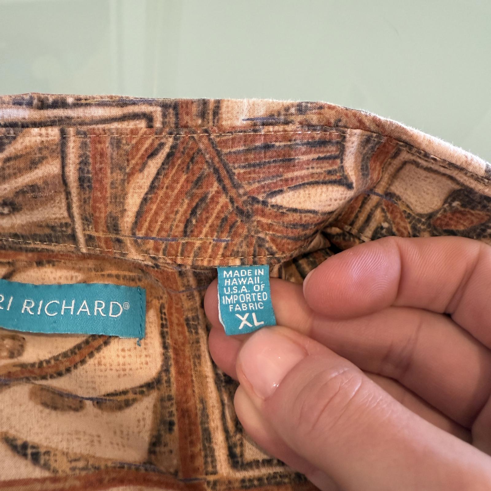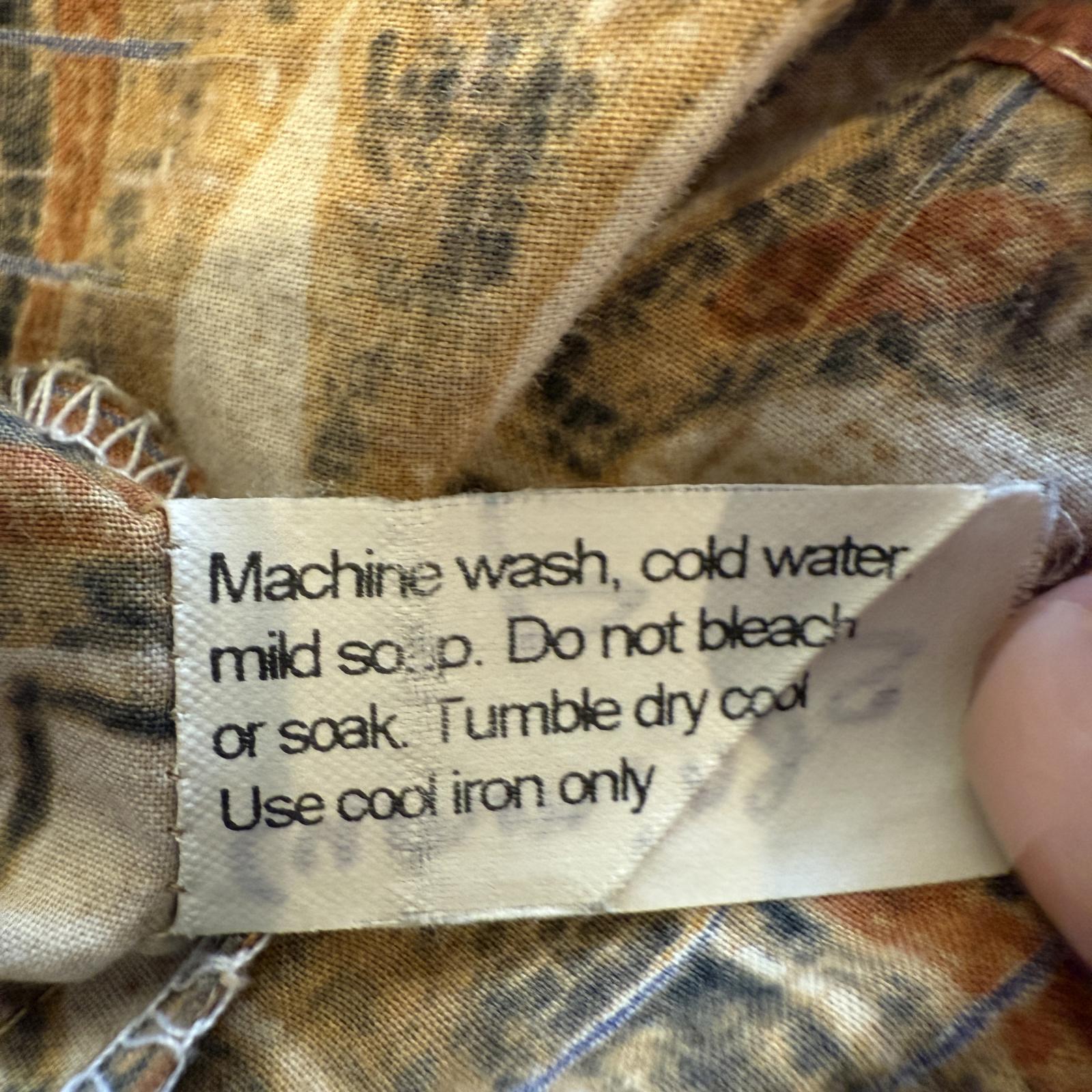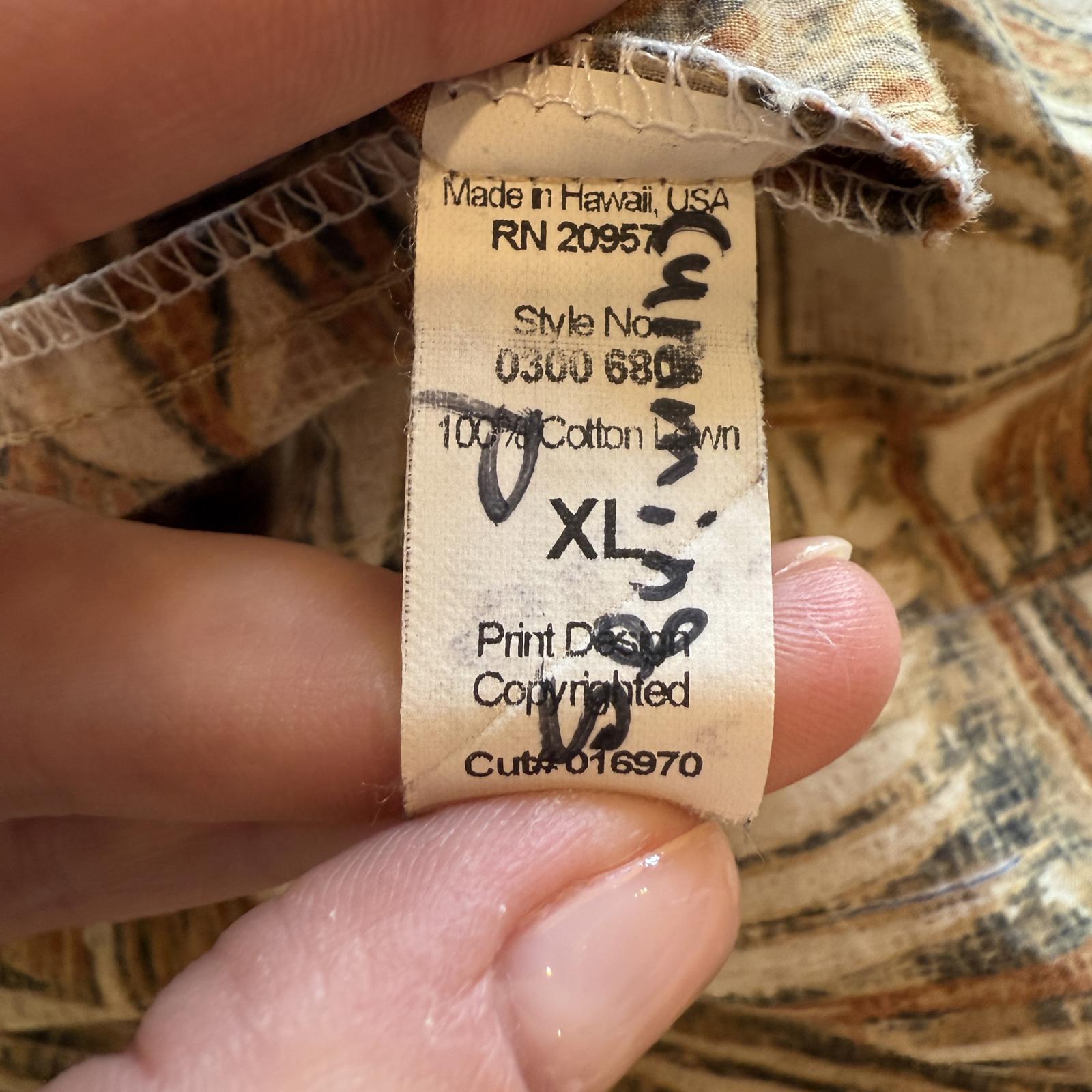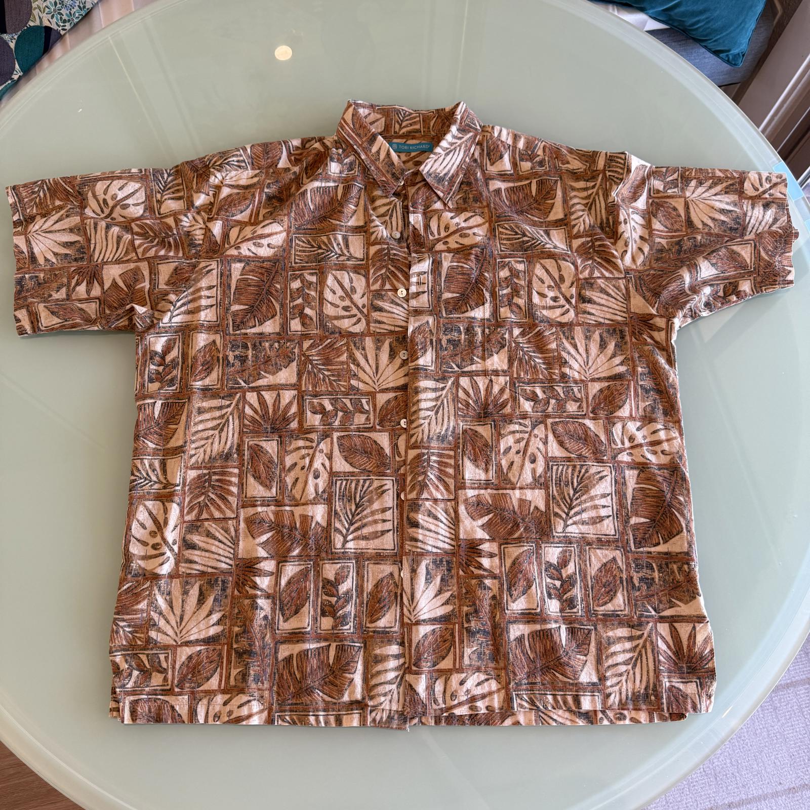 Fun Hawaiian print in neutral tones. 100% Cotton. Men's size XL