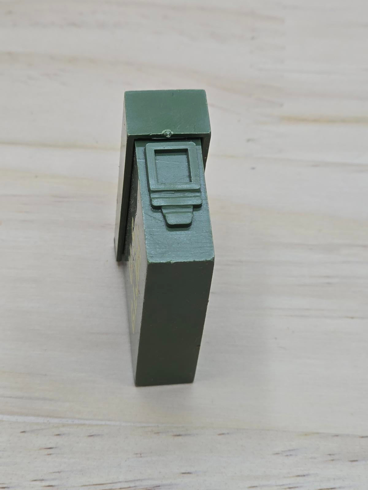 Vintage 1964 Hasbro G.I. Joe green ammo box with yellow lettering in good shape small blemish on the back of the lid.