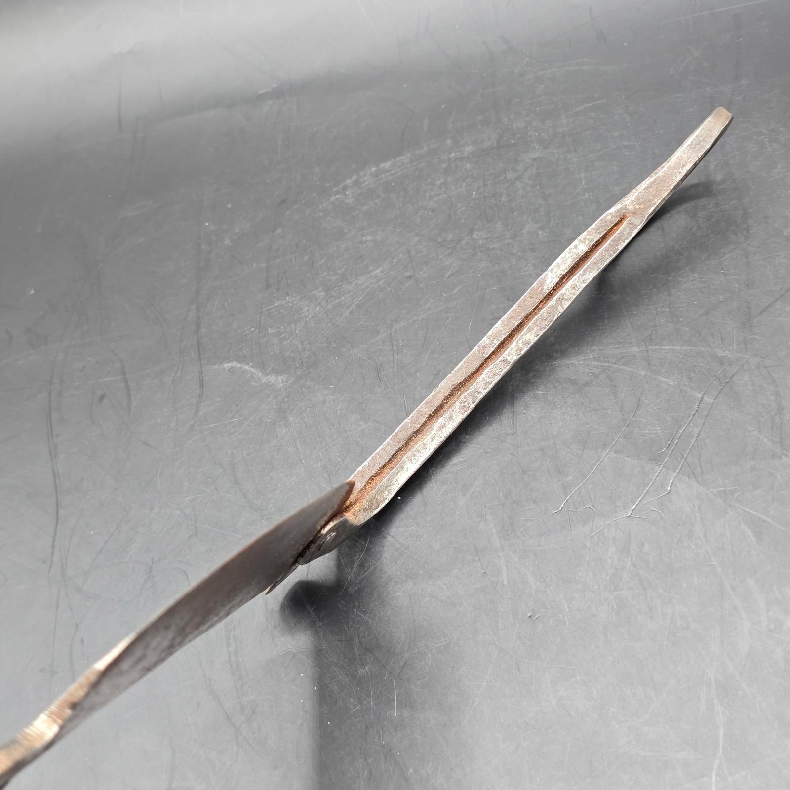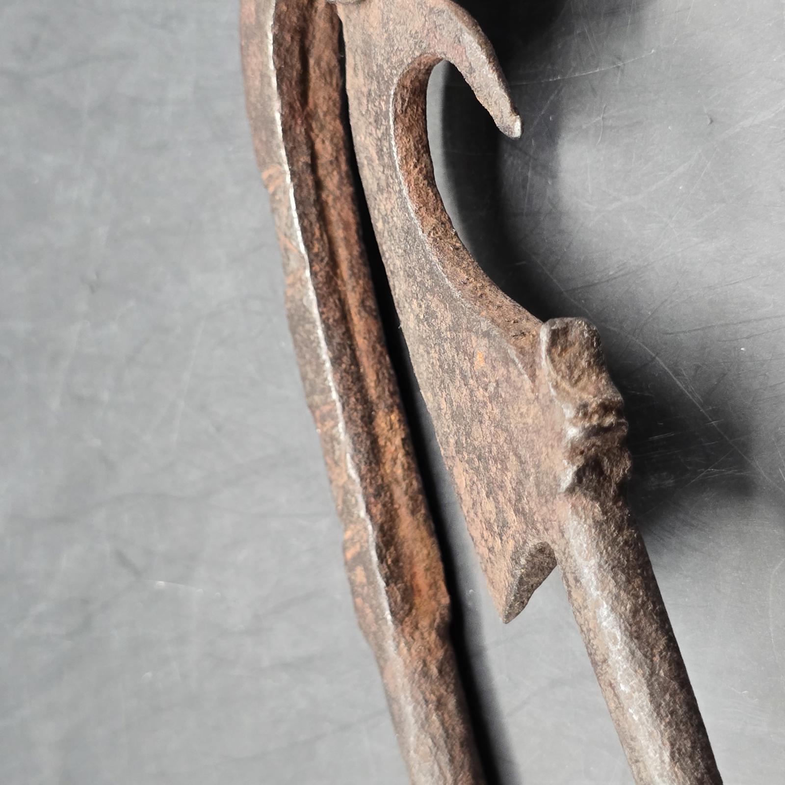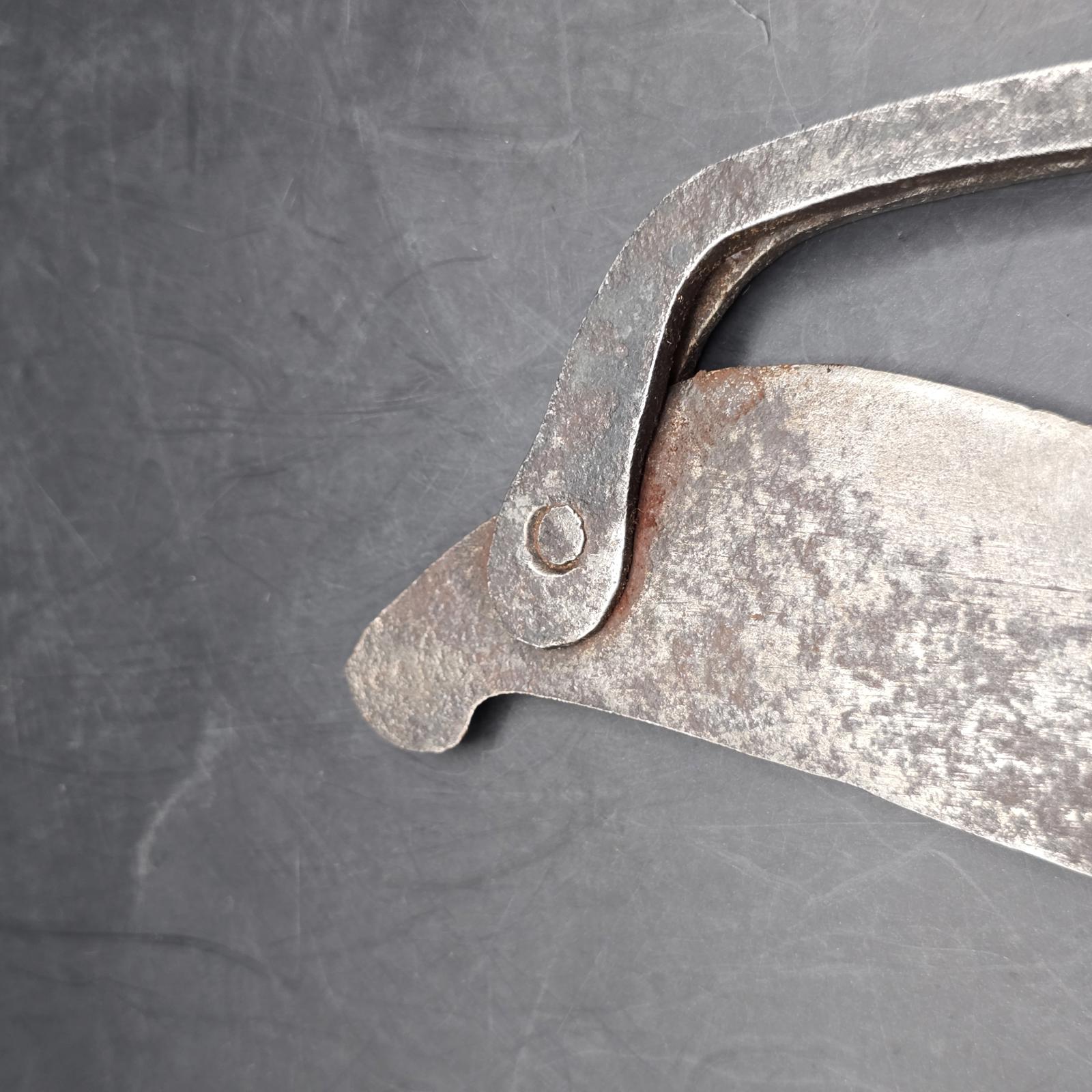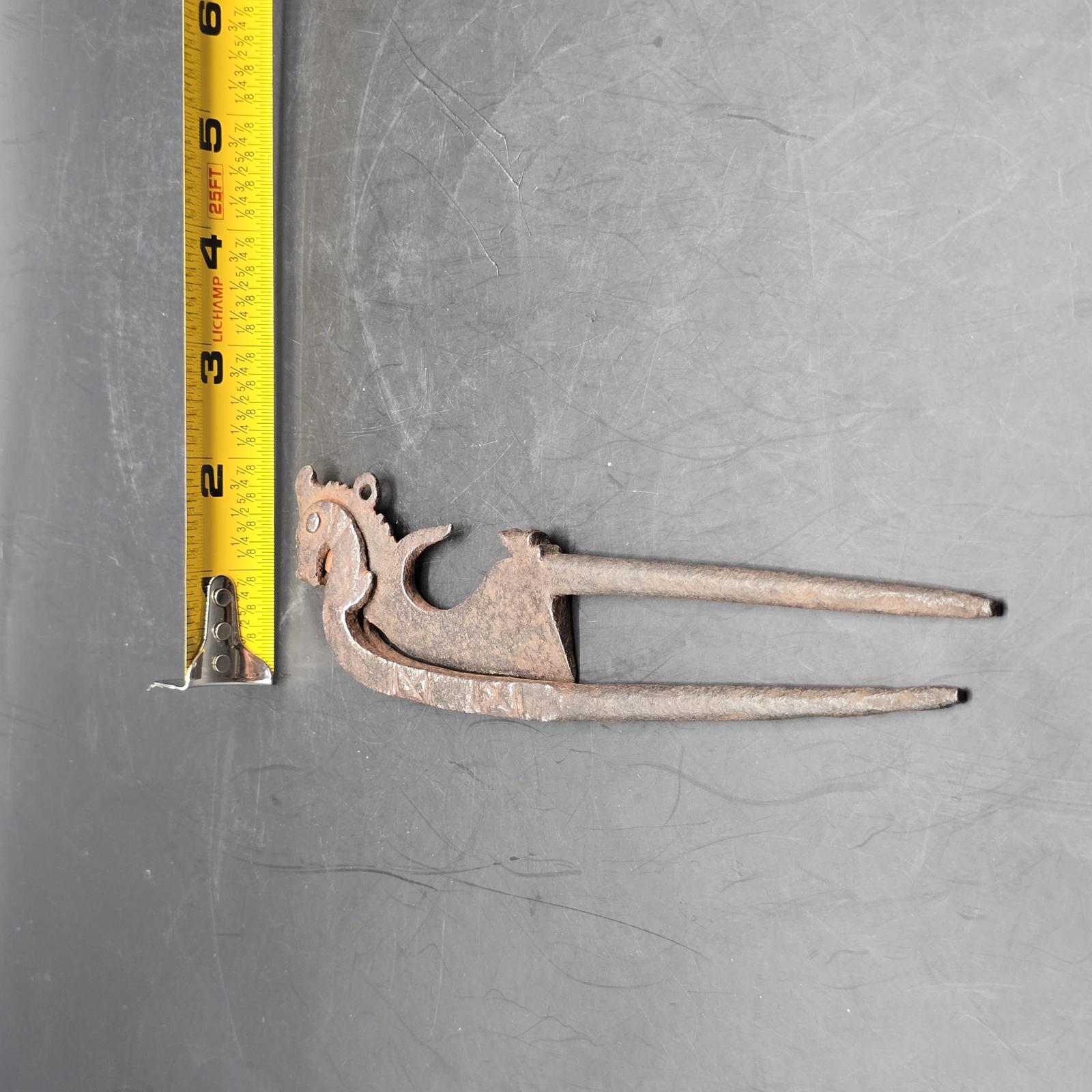 These cutters (also known as sarota or kacip), are/were used throughout Southeast Asia for the preparation of Betel Quid Chew. Betel nut chewing is an ancient practice, a sign of hospitality and an important part of many ceremonies. The nuts from the Areca Tree are placed in the trough of the cutters. The ground nuts are then combined with lime powder(produced by scraping seashells), and wrapped in betel leaves. The result is betel quid, which is mildly narcotic and a modest stimulant. It is chewed for hours and constant use often results in bright-red teeth and gums. The cutters are typically made from iron and each region has its own design. The smaller pair are most likely from Indonesia and are unique and a rare find. They date back to the late 19th-early 20th century and have an animal motif. The larger-blade, nut cutters were more typically found and used in households. Please check our listing for the set of 16th century Vietnamese lime pots.