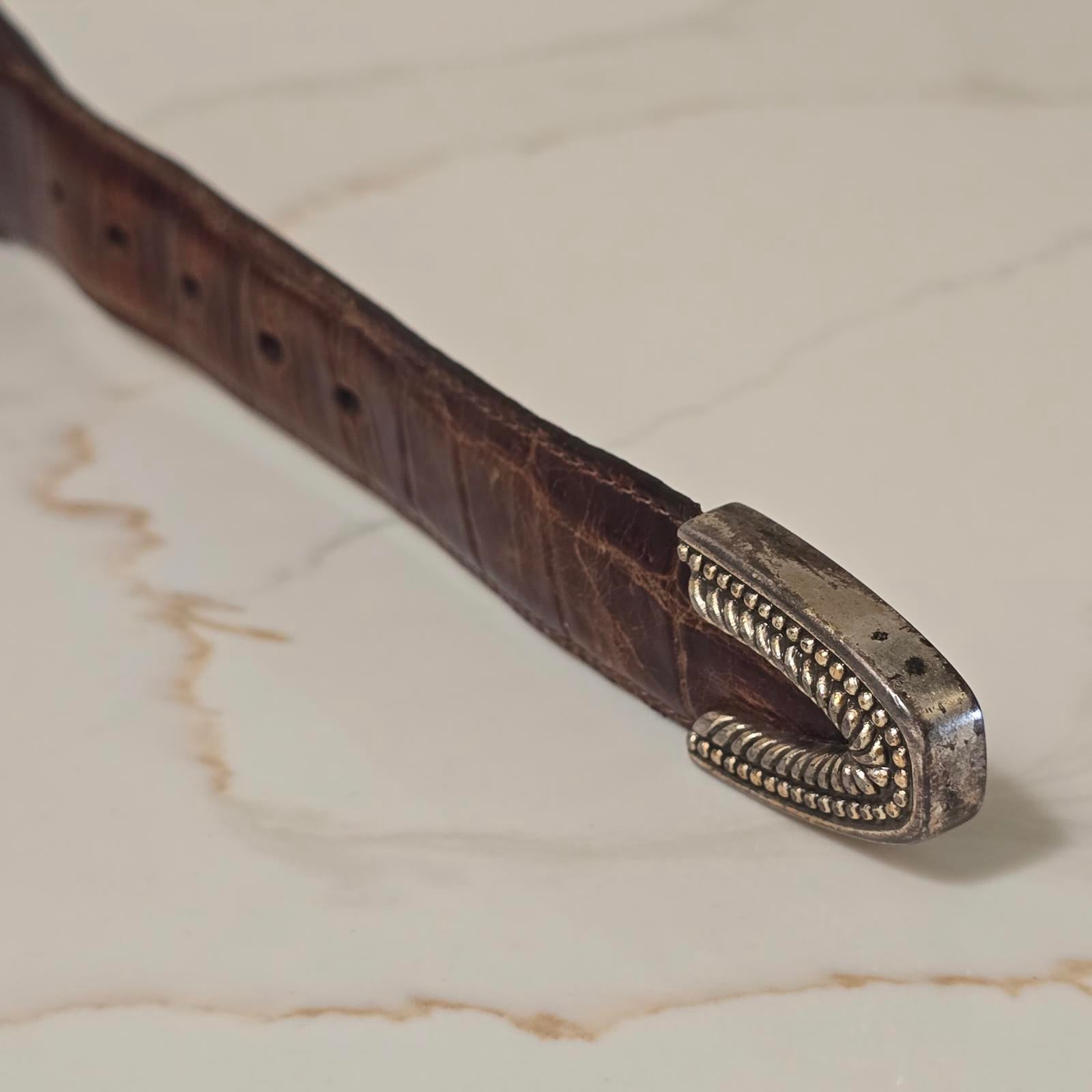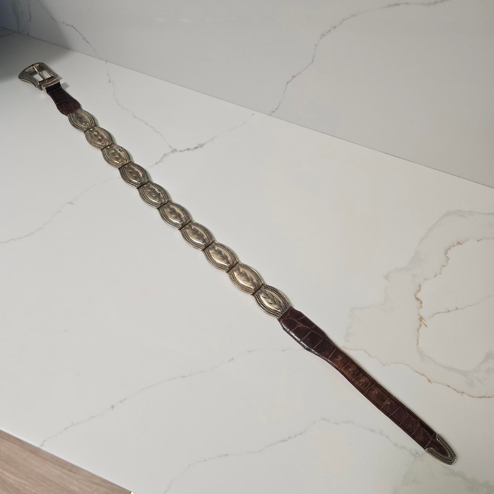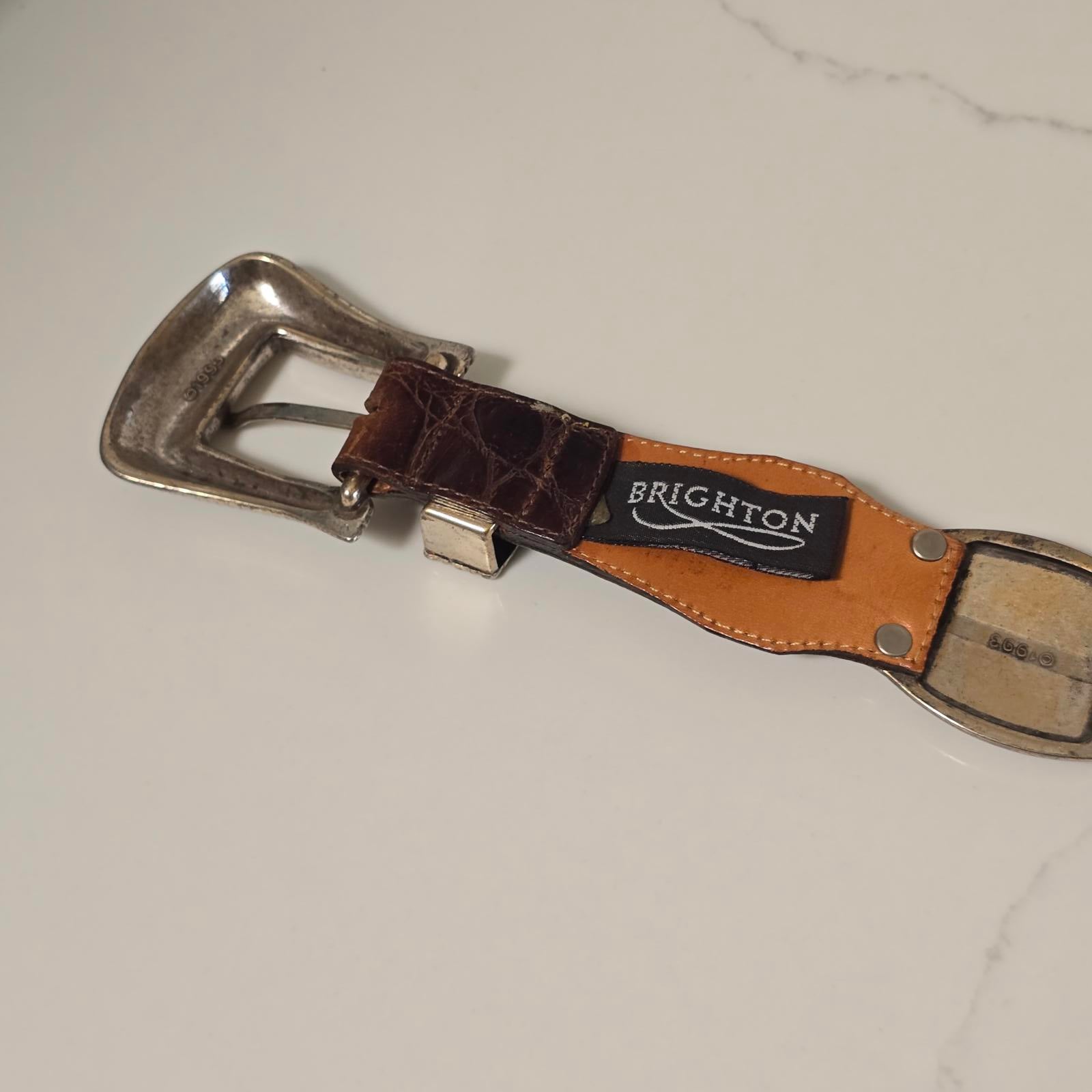 Vintage Brighton Western Silver-plated Conch and Leather Belt