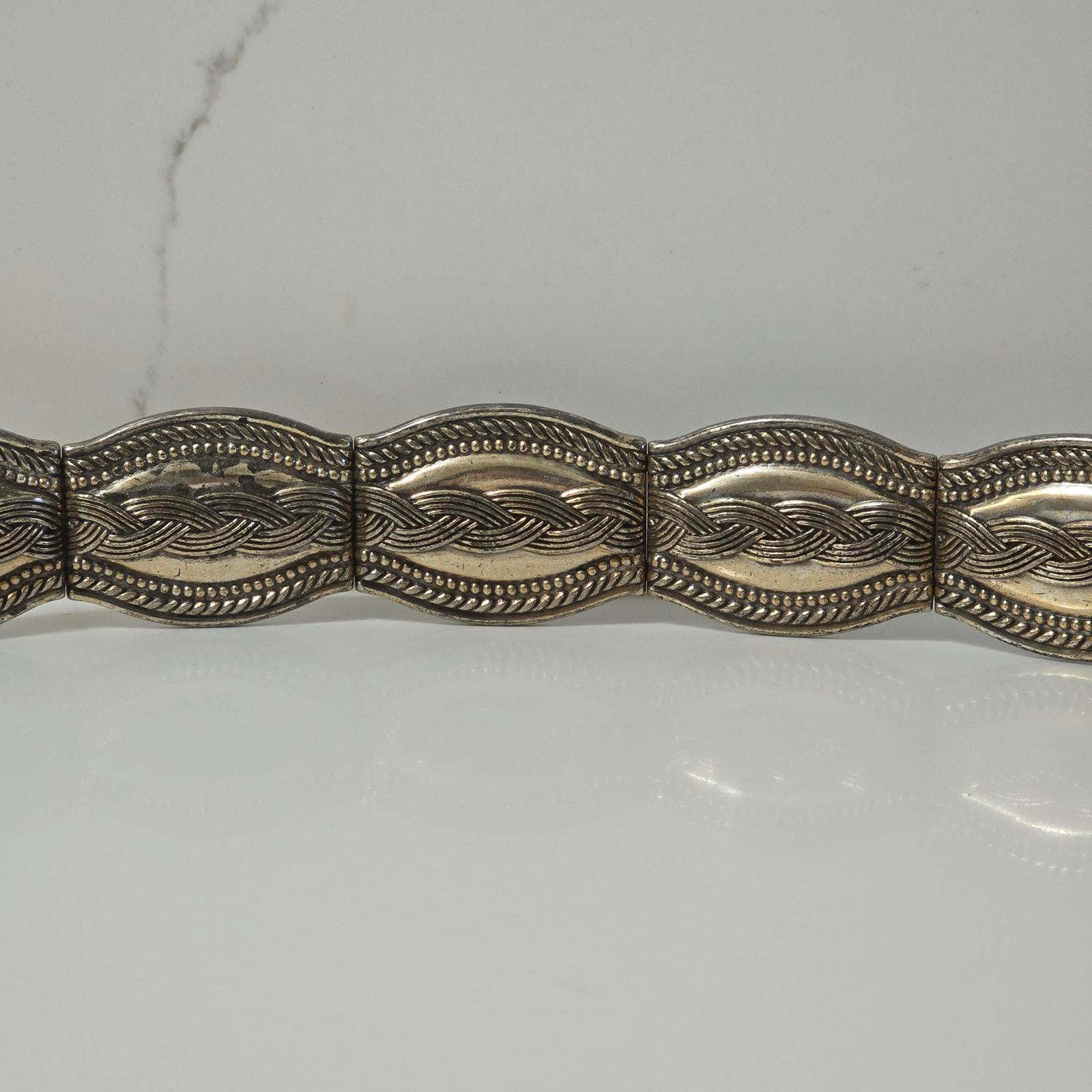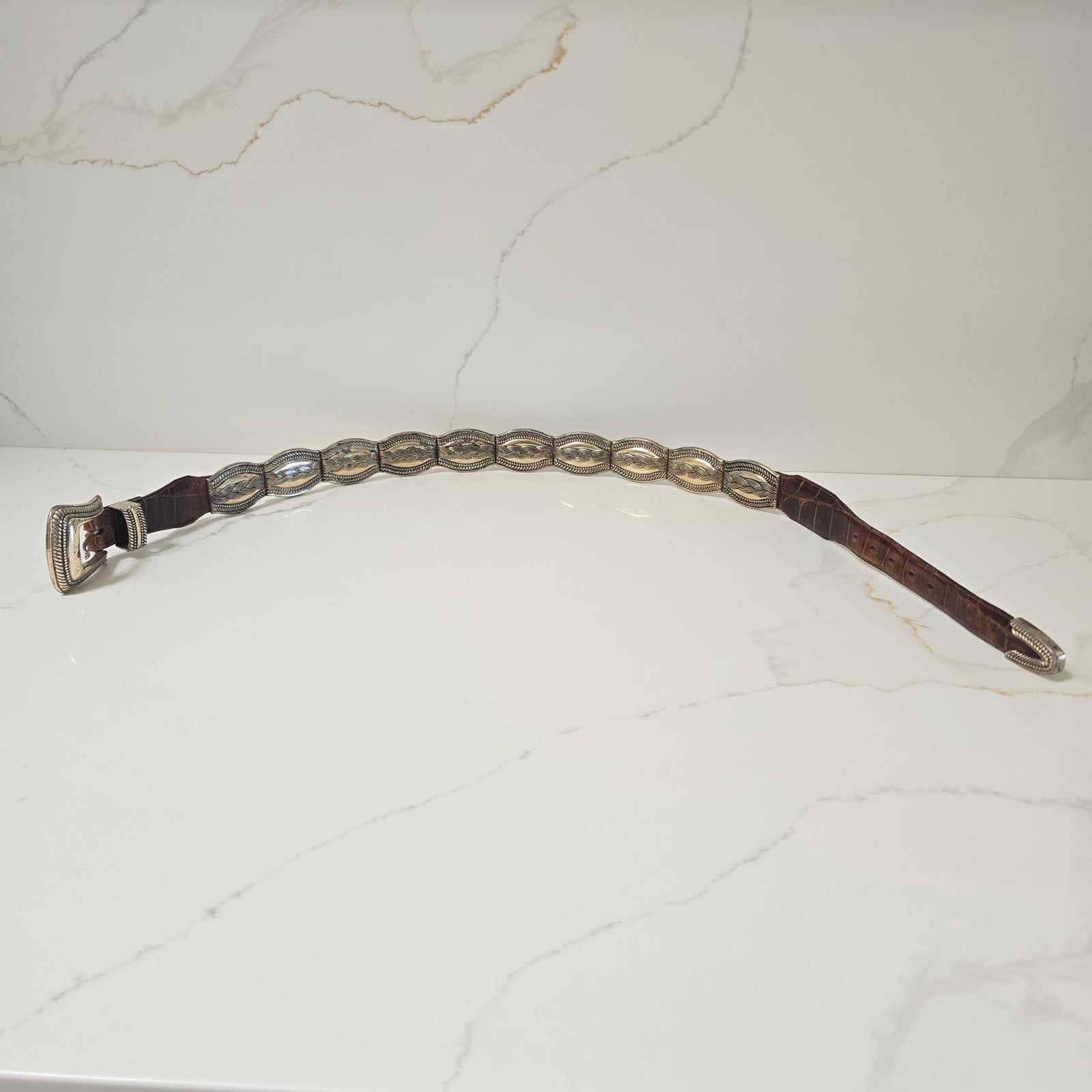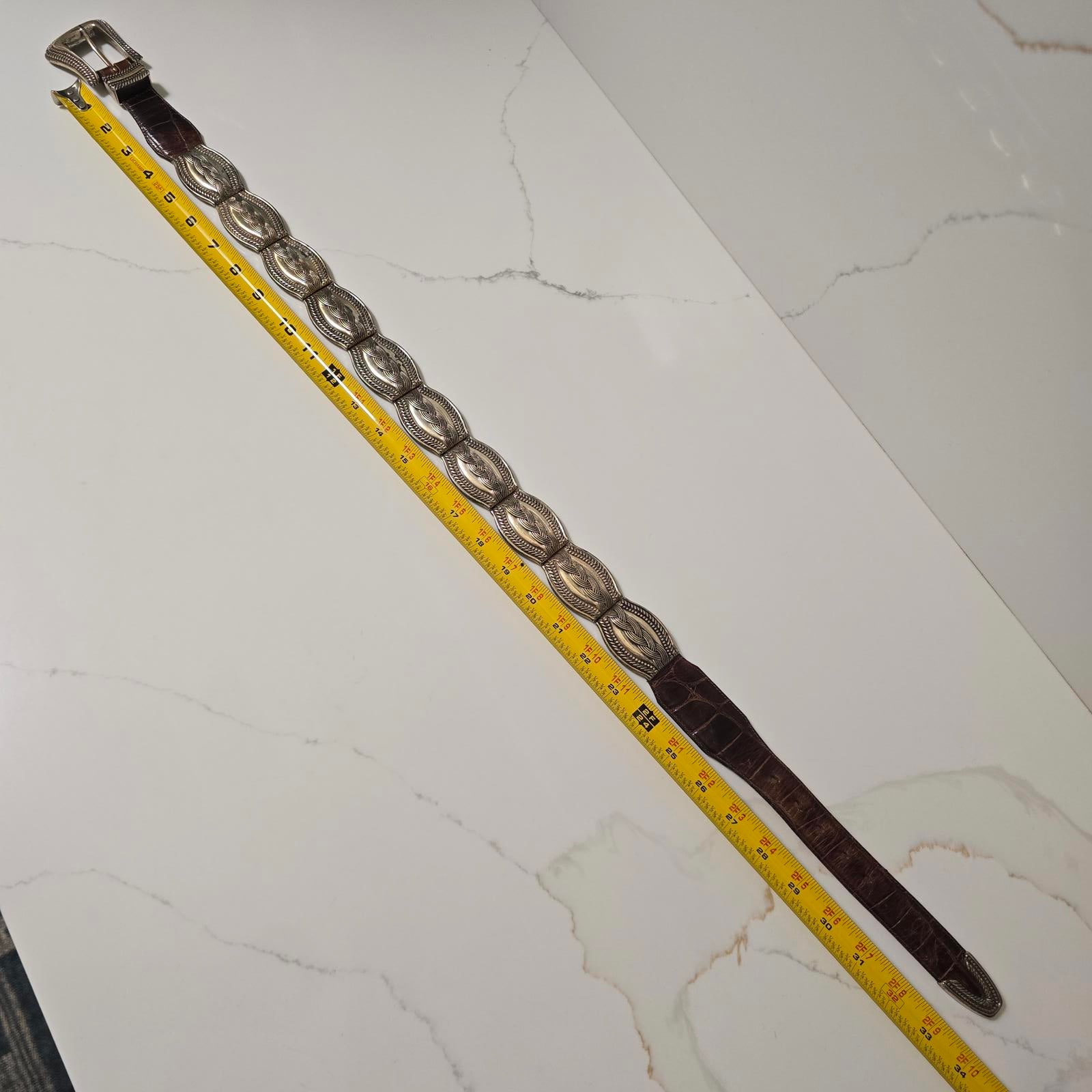 Distinctive and chic western belt with silver-plated conch links and textured leather trim. Size Medium. 36" including buckle