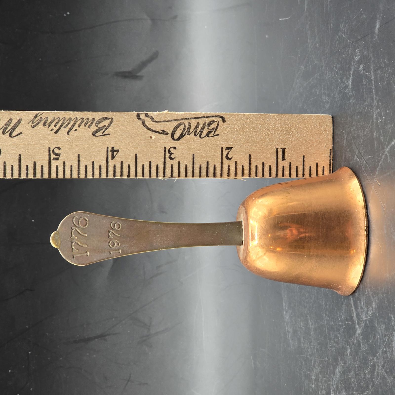 Collectible bell commemorating the Bicentennial. The bell is made of copper and has a brass handle and clapper. The handle is engraved with the dates 1776 and 1976. c. 1970's. Made in USA. Minimal wear consistent with age and use. Please refer to the photos as they are part of the description. Approximately 5" tall.