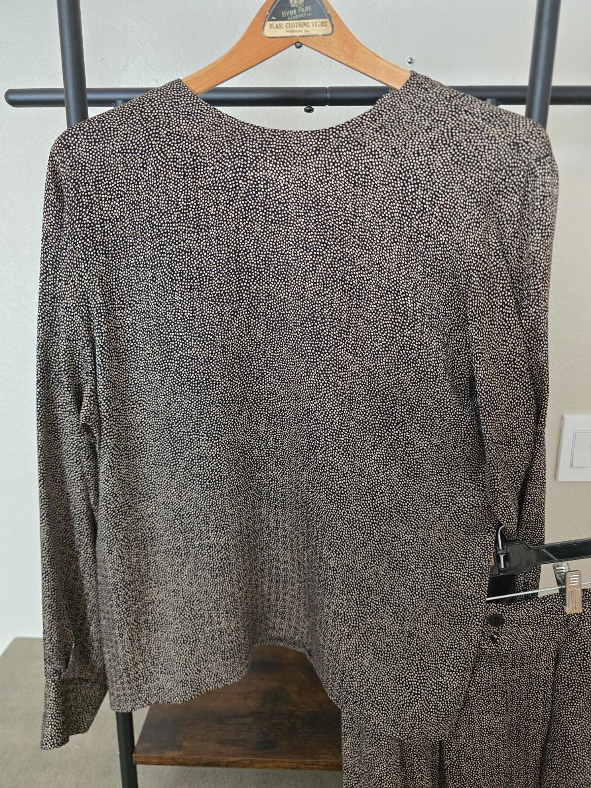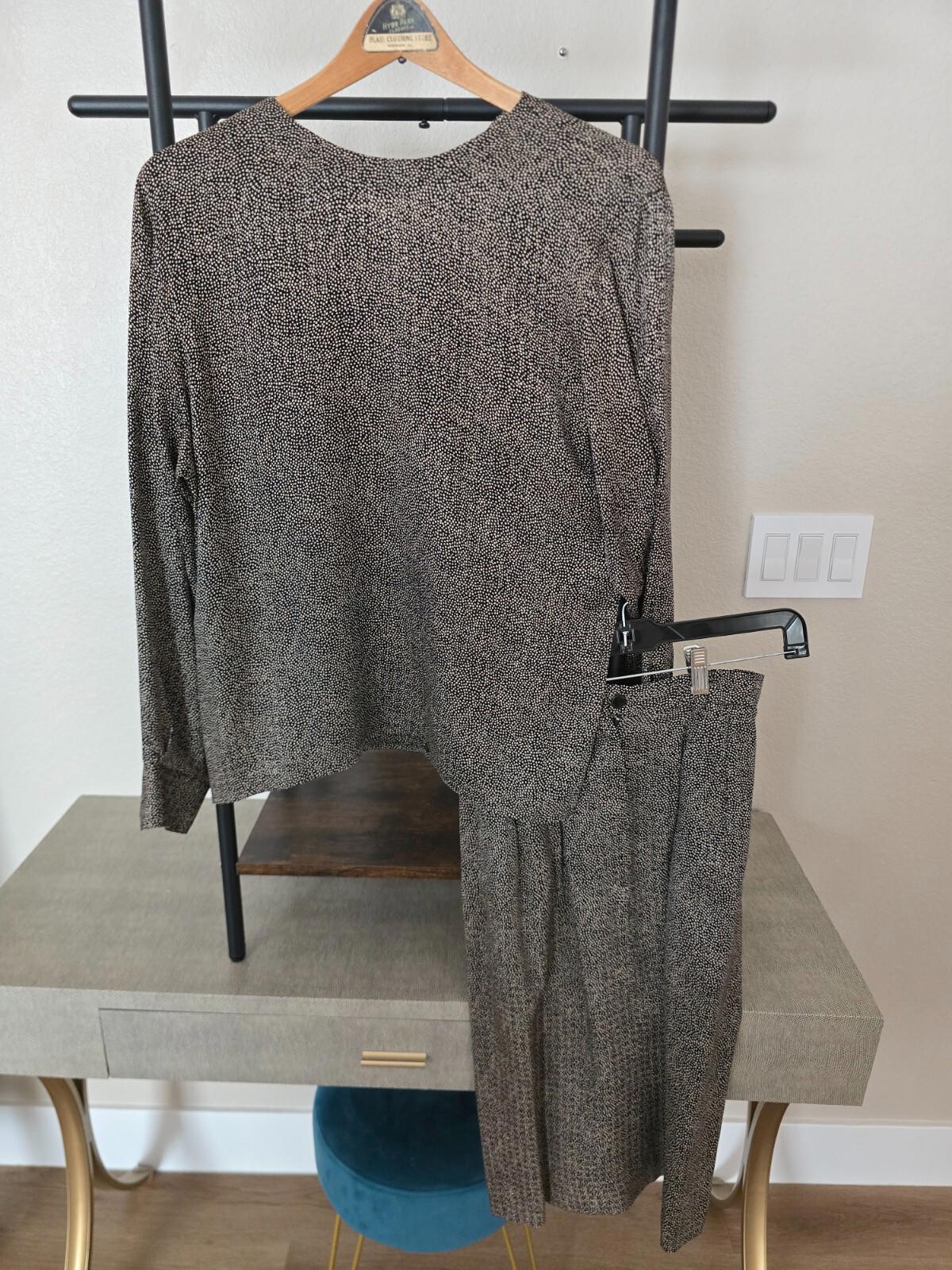Gorgeous black & taupe print silk blouse and skirt to be worn together or separate. Women's size 4.