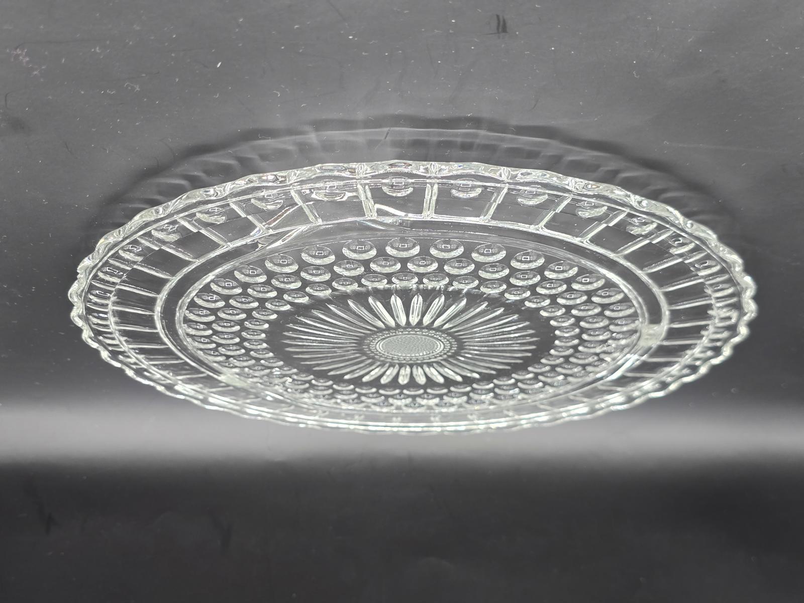 Distinctive "Bubble Sunburst" or "Bubble Daisy" pattern #2889, footed serving plate is perfect for cake and company. c. 1950's-1960's. Good condition with wear consistent with age and use.