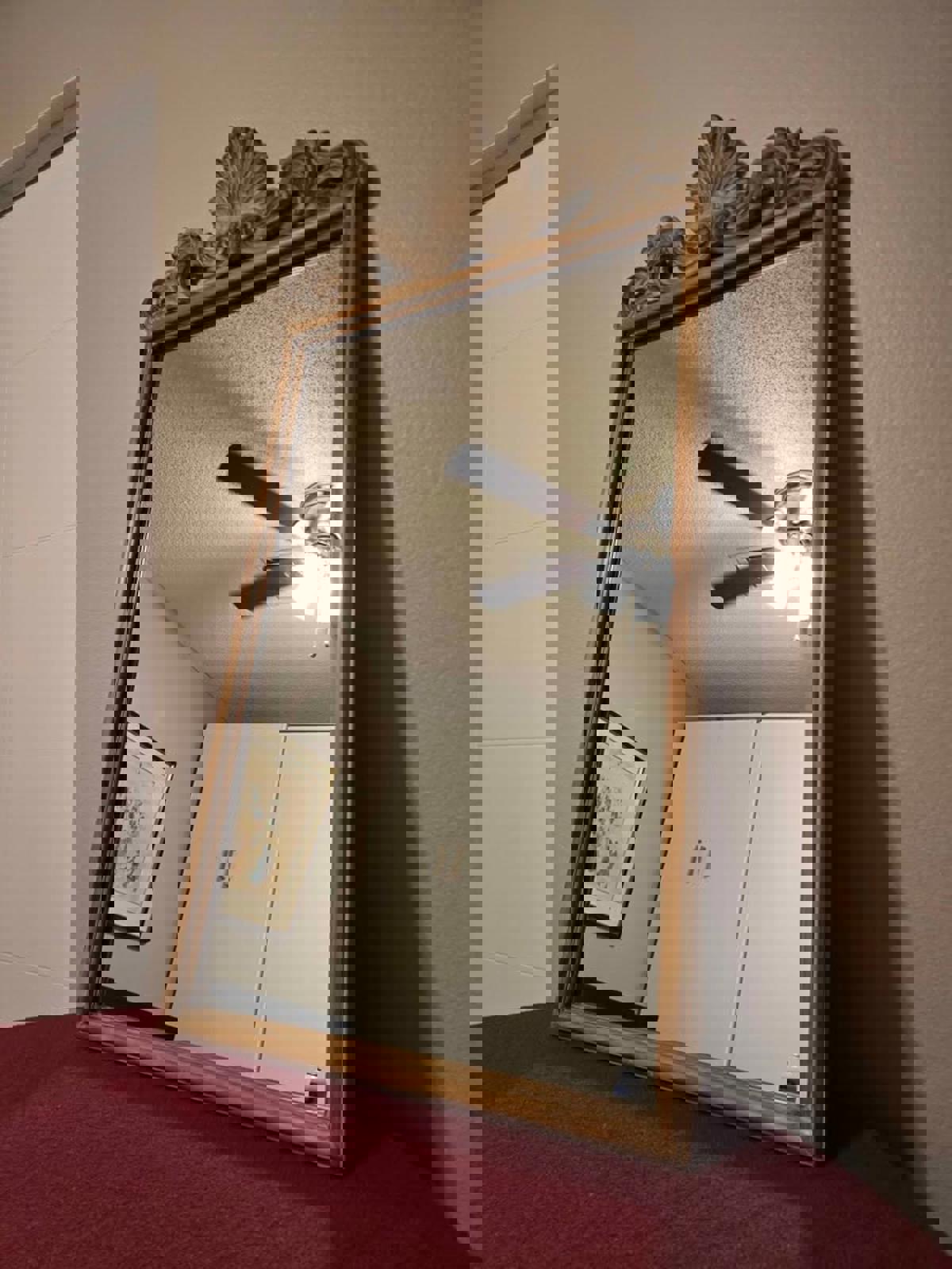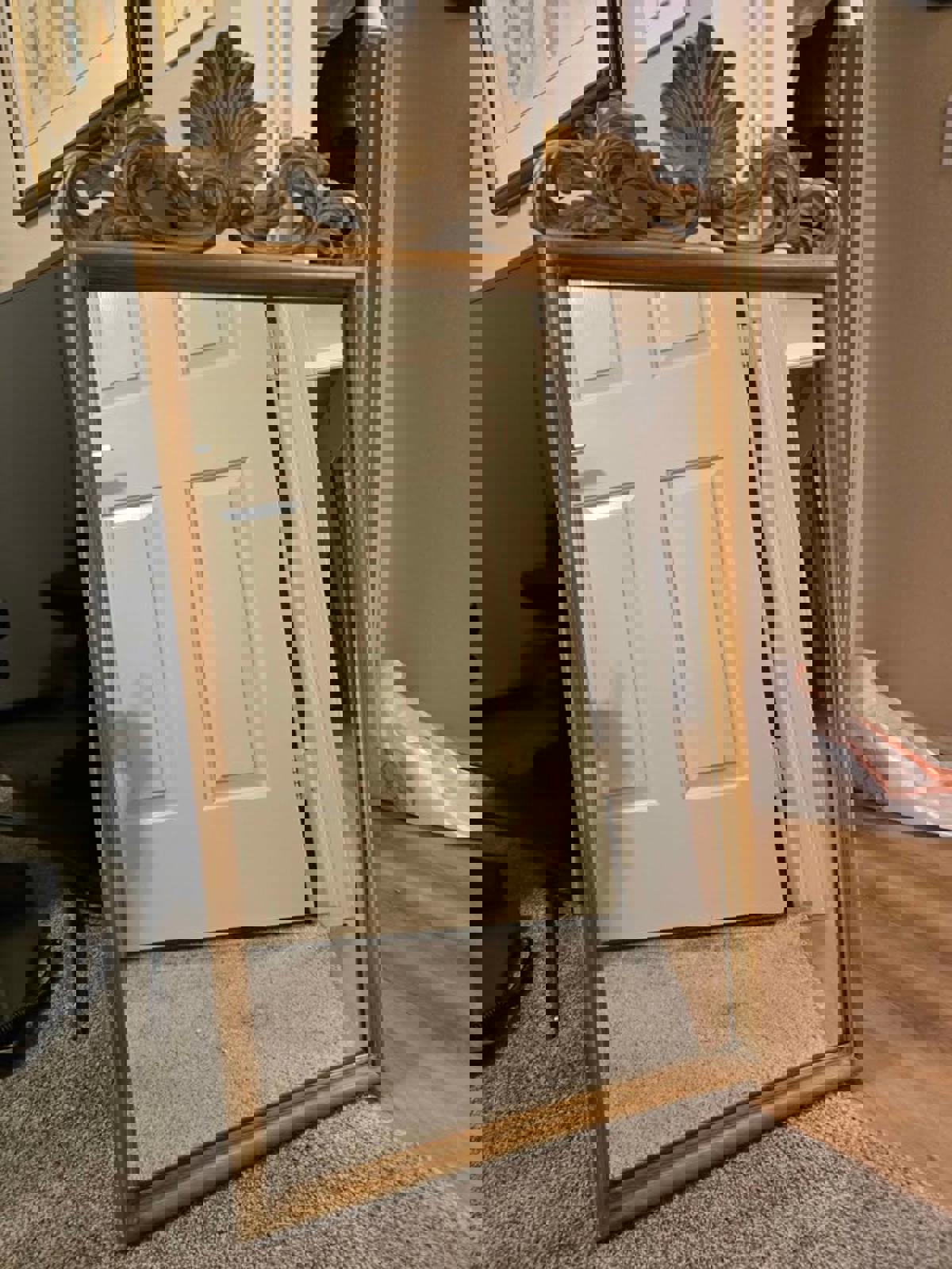 Vintage Italian Roccoco Style, Wood Mirror with Shell and "C" Scroll Motif