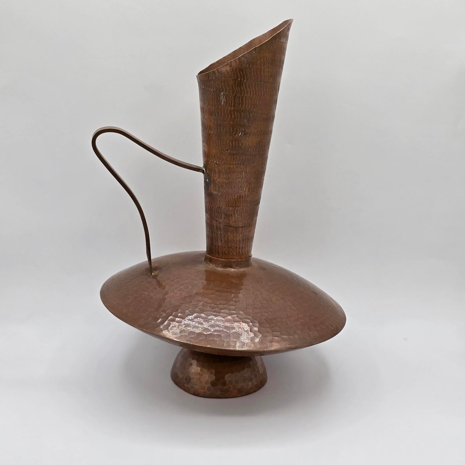 Vintage MCM Asymmetrical Hammered-Copper Pitcher