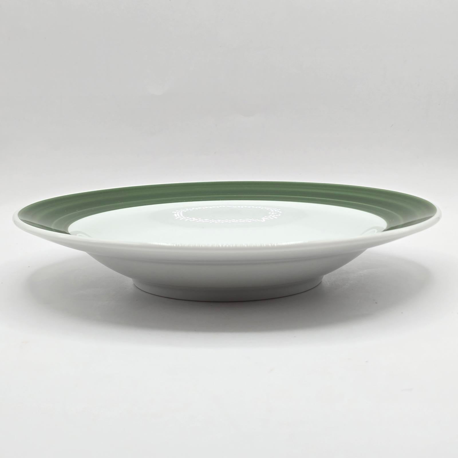 Desirable, discontinued Williams Sonoma Green Brasserie 9"- large-rim soup/cereal bowl with wide and/or solid band. Currently out of stock on Replacements. Bring the outdoors in and add that personal touch to your tablescape. Crafted in Japan. Excellent condition, no cracks or chips. Please refer to photos as they are part of the description. Check my listings for the coordinating dinner plates, lunch plates, and saucers.